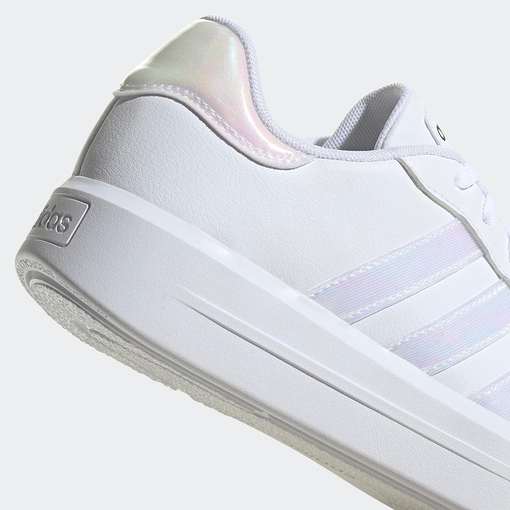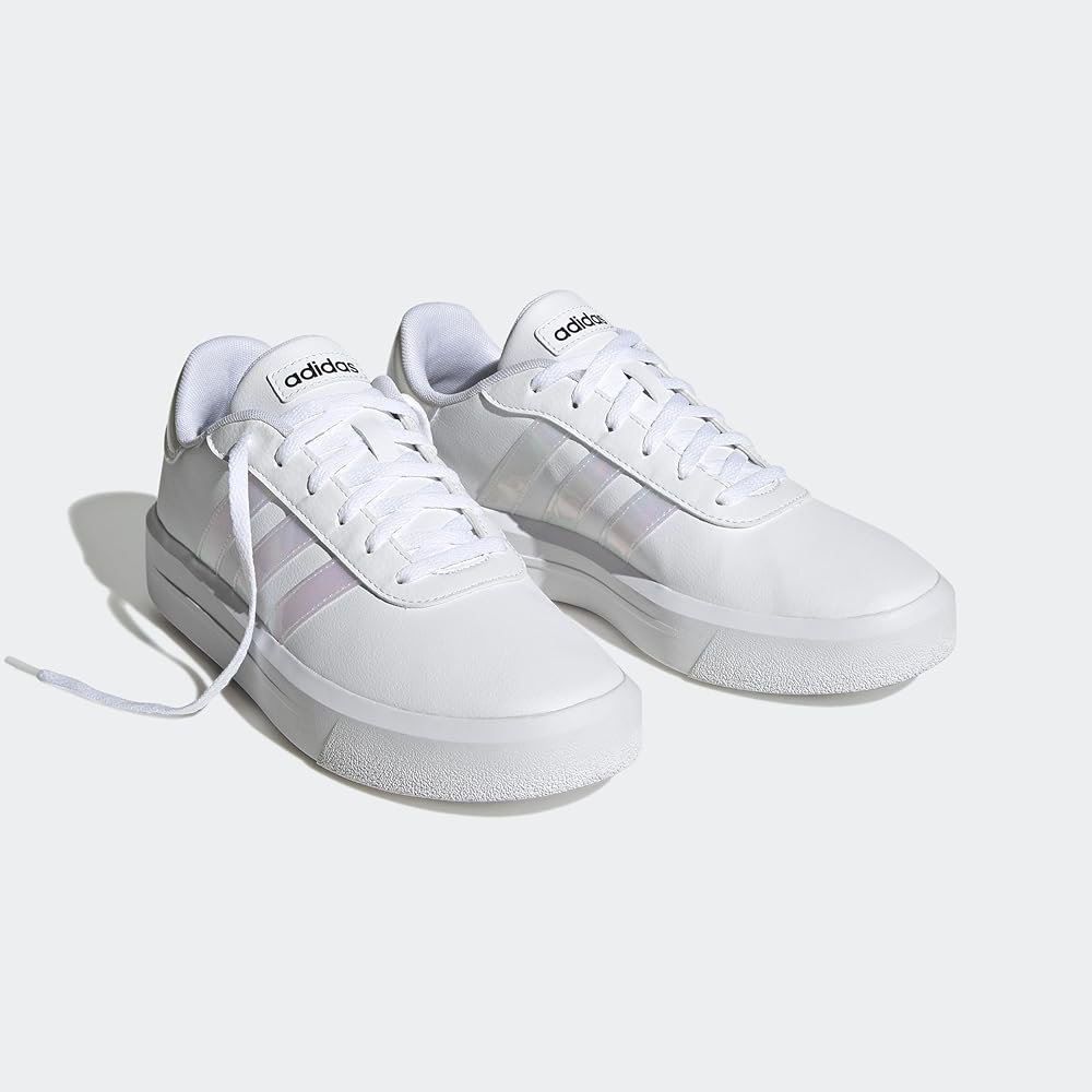 The skate-inspired silhouette of these women's adidas shoes brings a vibe that's fresh and laid-back. They feature a durable synthetic upper and a raised platform midsole for elevated style and comfort. Logos on the tongue and sides complete the look.