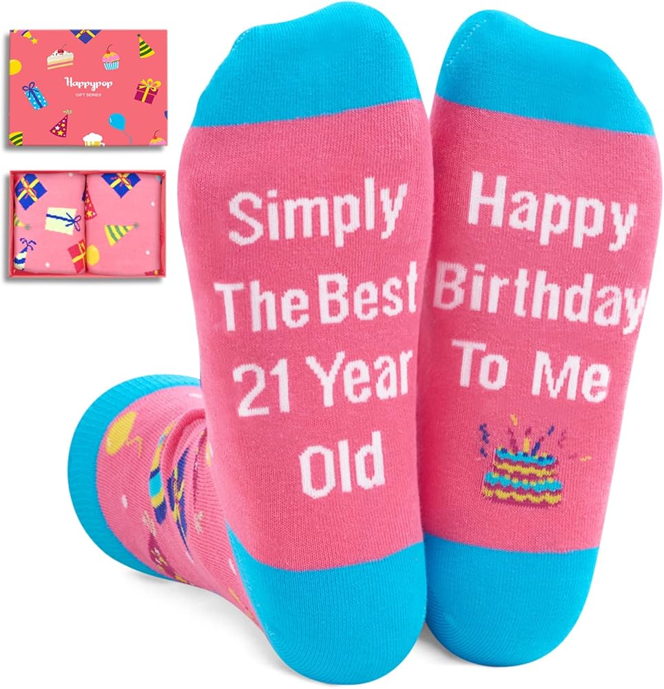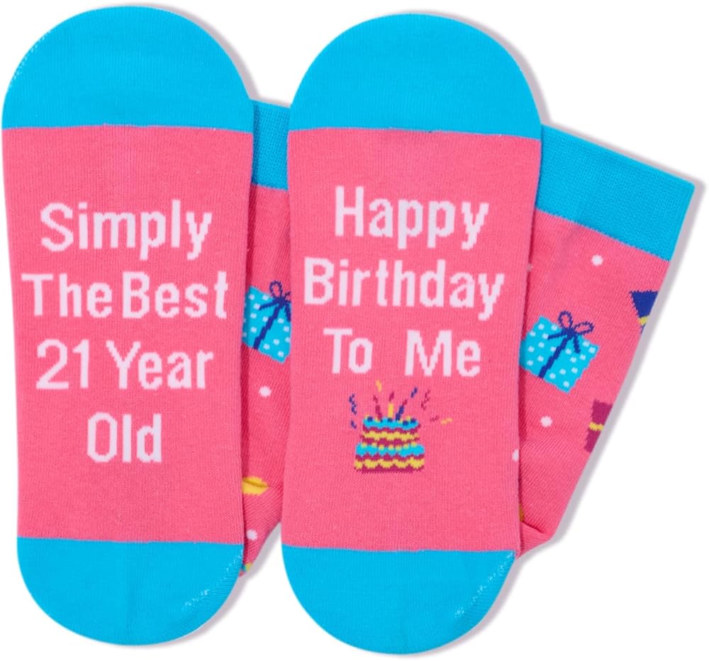 جوارب عيد الميلاد: تتميز الجوارب بهدايا عيد الميلاد، والقبعات، والبالونات، وعناصر أخرى في الجزء العلوي، في حين أن الجزء السفلي مخيط برسالة مخفية مرحة: "ببساطة أفضل 21 عامًا، عيد ميلاد سعيد لي". إنها أفضل هدايا عيد الميلاد الحادي والعشرين.