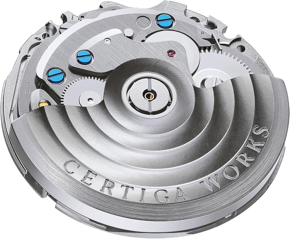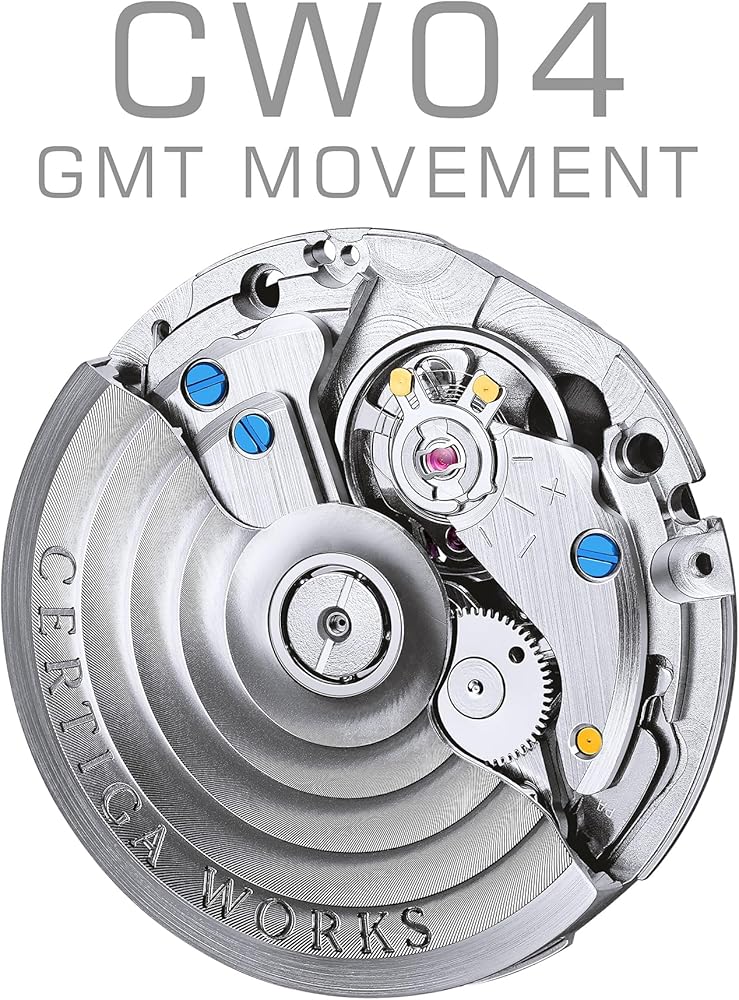 ساعة CRAFTER BLUE Certiga Works 24 جوهرة CW04 حركة معدلة مع وظيفة GMT التي يمكنها تتبع مناطق زمنية متعددة في وقت واحد. 21600 ذبذبة في الساعة؛ احتياطي الطاقة لأكثر من 41 ساعة.