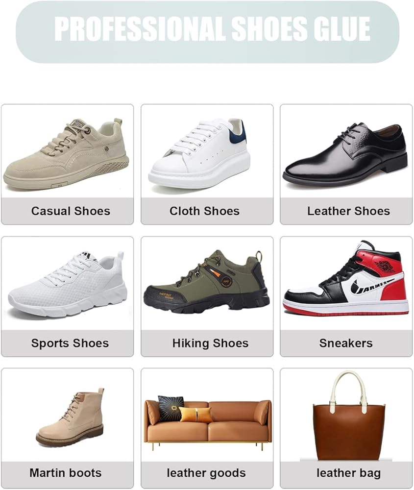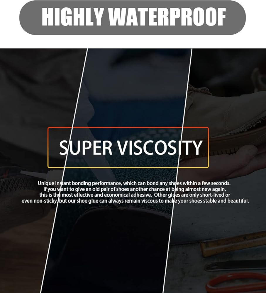 【استخدام واسع】تم تركيبه للاستخدام على جميع مواد الأحذية، خاصة الأحذية المطاطية والفينيل حيث تفشل المواد اللاصقة الأخرى، بما في ذلك الأحذية الطويلة والأحذية الرياضية وأحذية التسلق وأحذية الفساتين والمزيد. متوافق مع جميع أنواع الأحذية بما في ذلك الجلد والجلد السويدي والمطاط والنيوبرين والقماش وأحذية وأحذية GORE-TEX. روابط قوية بشكل لا يصدق، مرنة وصلبة بشكل لا يصدق، مع التصاق قوي، مقاومة لدرجات الحرارة العالية، مقاومة عالية للماء، مقاومة للشيخوخة، لا اصفرار ولا ضرر للأحذية.