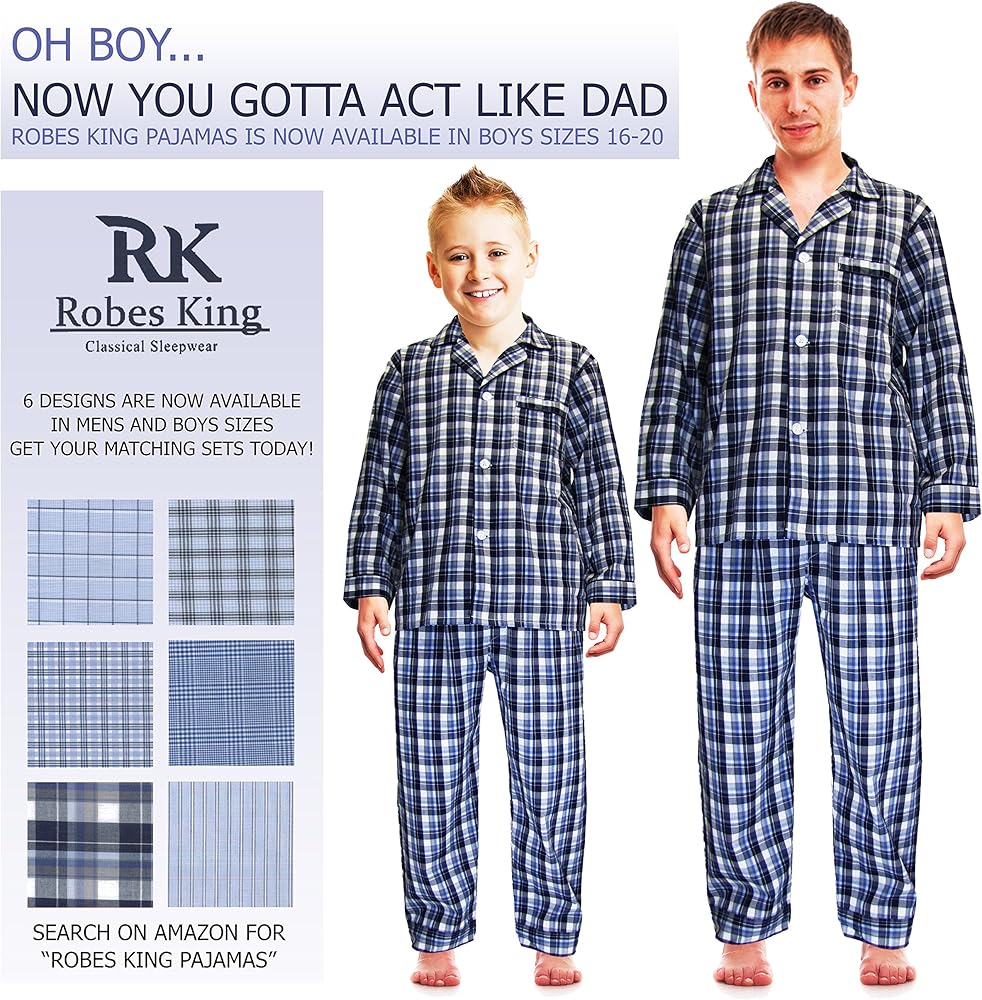 Some designs are also available in big boys sizes 16, 18 and 20, to get your matching pajamas sets search on Amazon for "ROBES KING PAJAMAS"