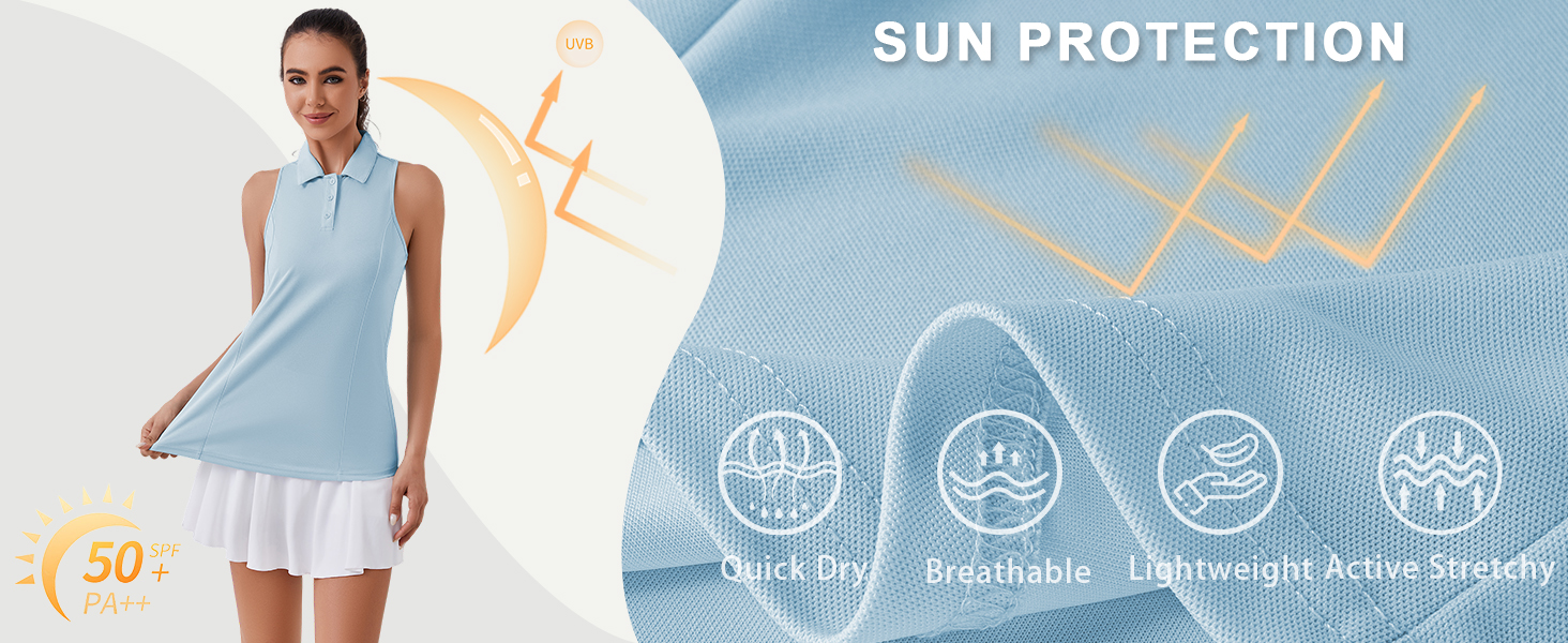 حماية من أشعة الشمس بعامل حماية من أشعة الشمس 50+: قمصان جولف نسائية بعامل حماية من أشعة الشمس 50+ تحجب الأشعة فوق البنفسجية الضارة، مما يجعلها مثالية للأنشطة الخارجية.