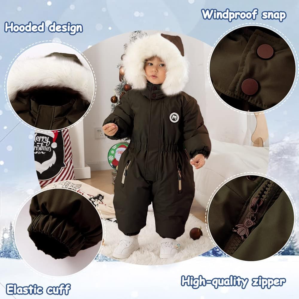 【مقاومة للماء والرياح】بدلة الثلج المكونة من قطعة واحدة مقاومة للماء والرياح للأطفال الصغار مصنوعة من نسيج القطن والبوليستر عالي الجودة، ودرجة حرارة القفل ثلاثية الطبقات التي ستساعد الأطفال على البقاء دافئًا وتجنب التعرض للثلوج أو البلل. بدلة الثلج المكونة من قطعة واحدة للأطفال الصغار سهلة الارتداء والتعديل والتنظيف.