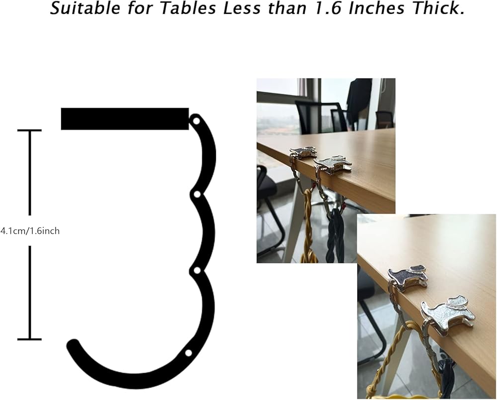 تصميم وسادة مضادة للانزلاق: يتم تثبيت الوسادة المضادة للانزلاق على الطاولة، بحيث يمكن تعليق الحقيبة بسهولة على الطاولة. خطاف تعليق الأكياس هذا مناسب للطاولات التي يقل سمكها عن 4 سم / 1.5 انش