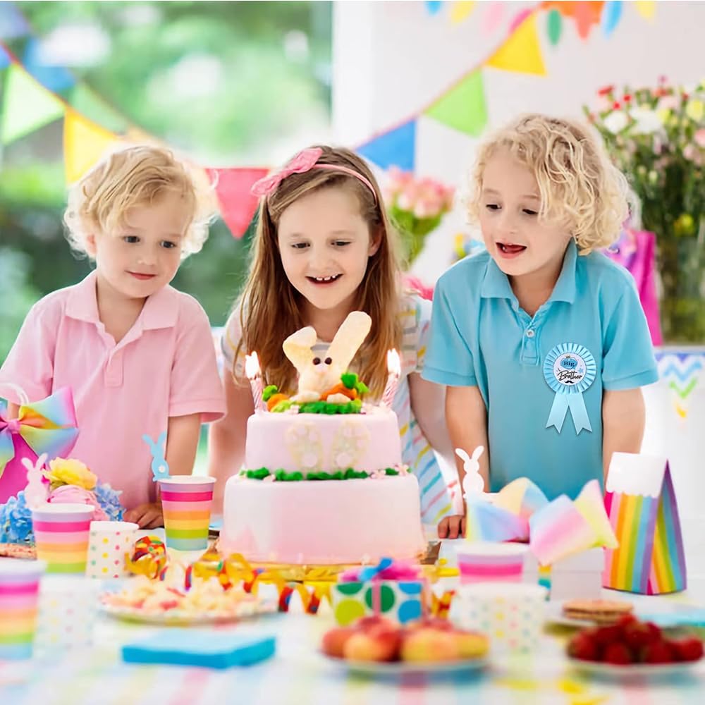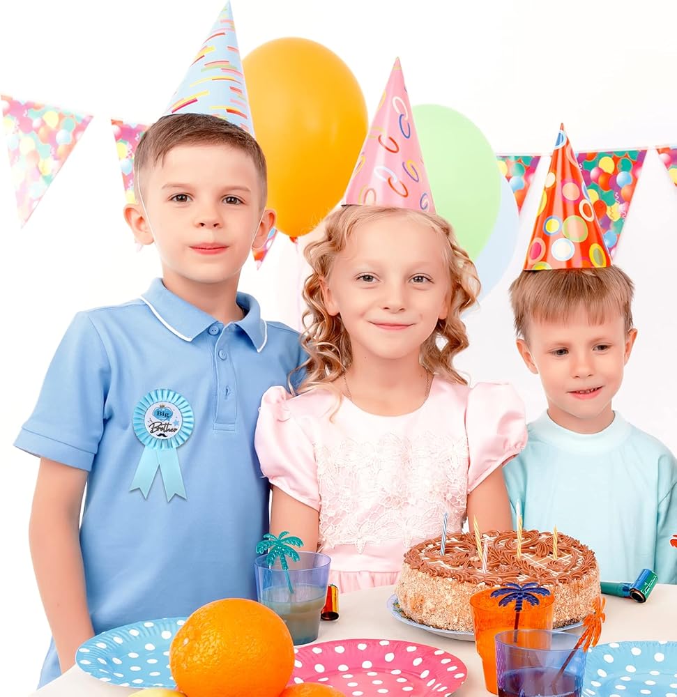 دبوس شارة صفيح من قماش الساتان، دبابيس أزرار على شكل وردة لعيد ميلاد الأولاد، دبوس بروش اكسسوار لحفلات عيد ميلاد سعيد، زينة حفلات الأطفال والبالغين باللون الأزرق، عبوة من قطعة واحدة