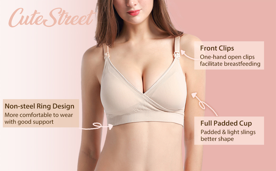 حمالة صدر لاسلكية مبطنة للرضاعة: هذه الصدرية مبطنة بشكل خفيف ومصممة ببطانات قابلة للإزالة، مما يوفر تغطية كاملة كحمالة صدر للرضاعة. يضمن التصميم اللاسلكي أن يكون الحزام ناعمًا جدًا ولا يضغط على القفص الصدري.