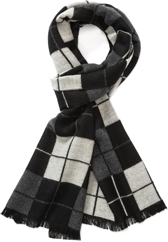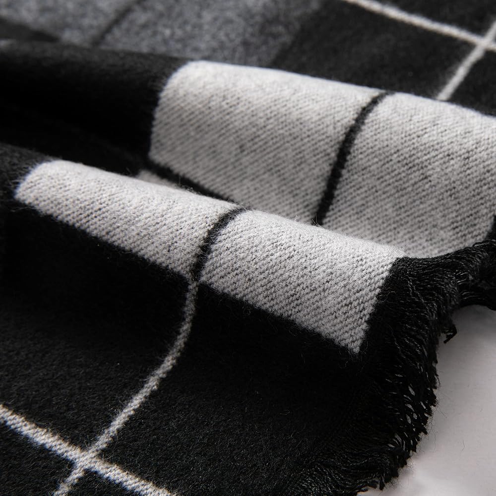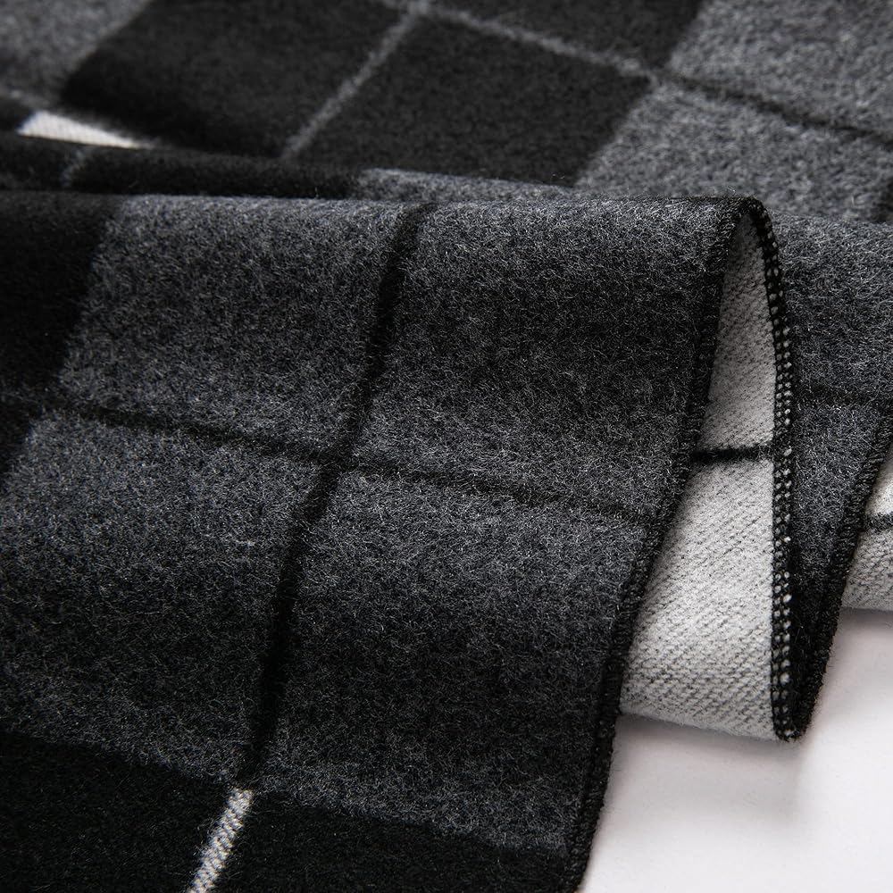 GENEROUS SIZE: 12" width x 70" length with 1'' Fringes on both ends, features a cozy checkered and striped pattern. Extremely comfortable and soft texture with an extra-long, wrappable length, perfect for fall and winter season.