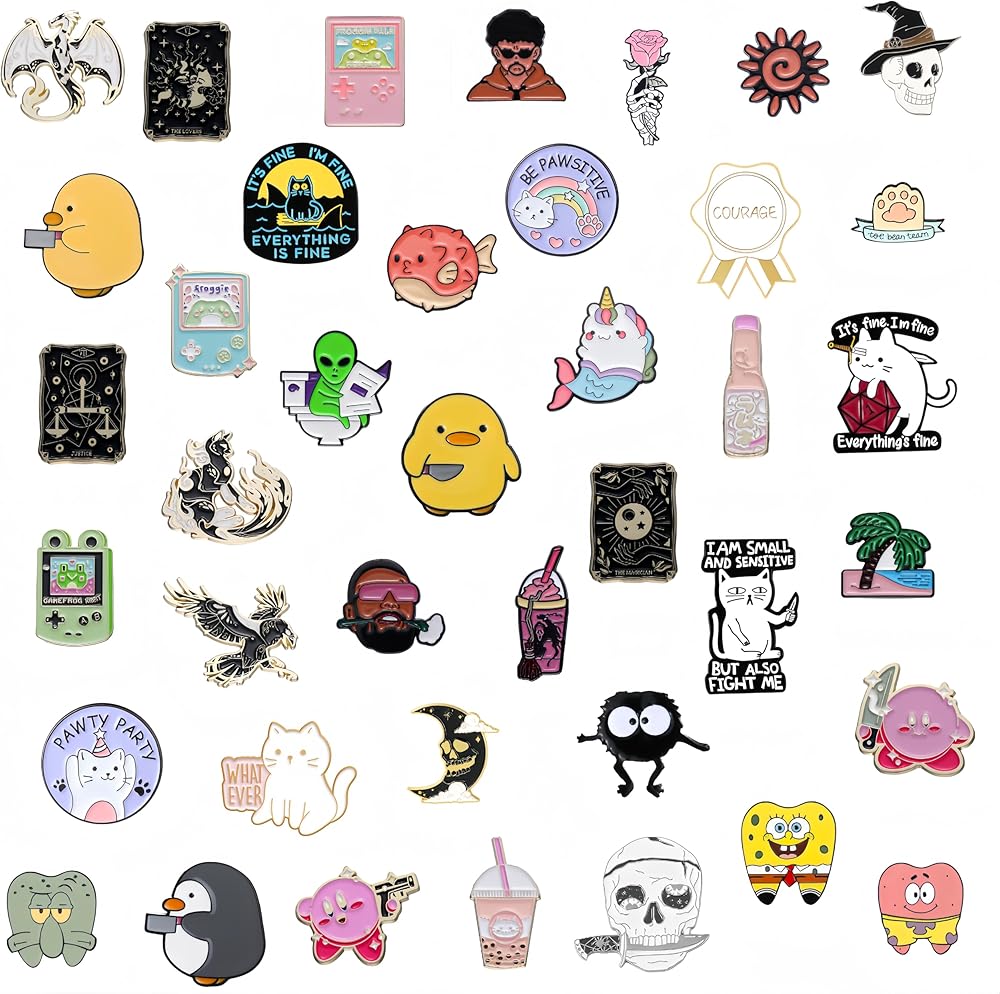 Randomly obtain 20 different enamel pins from the picture,blind box mode,bringing you a pleasant surprise of winning the prize.