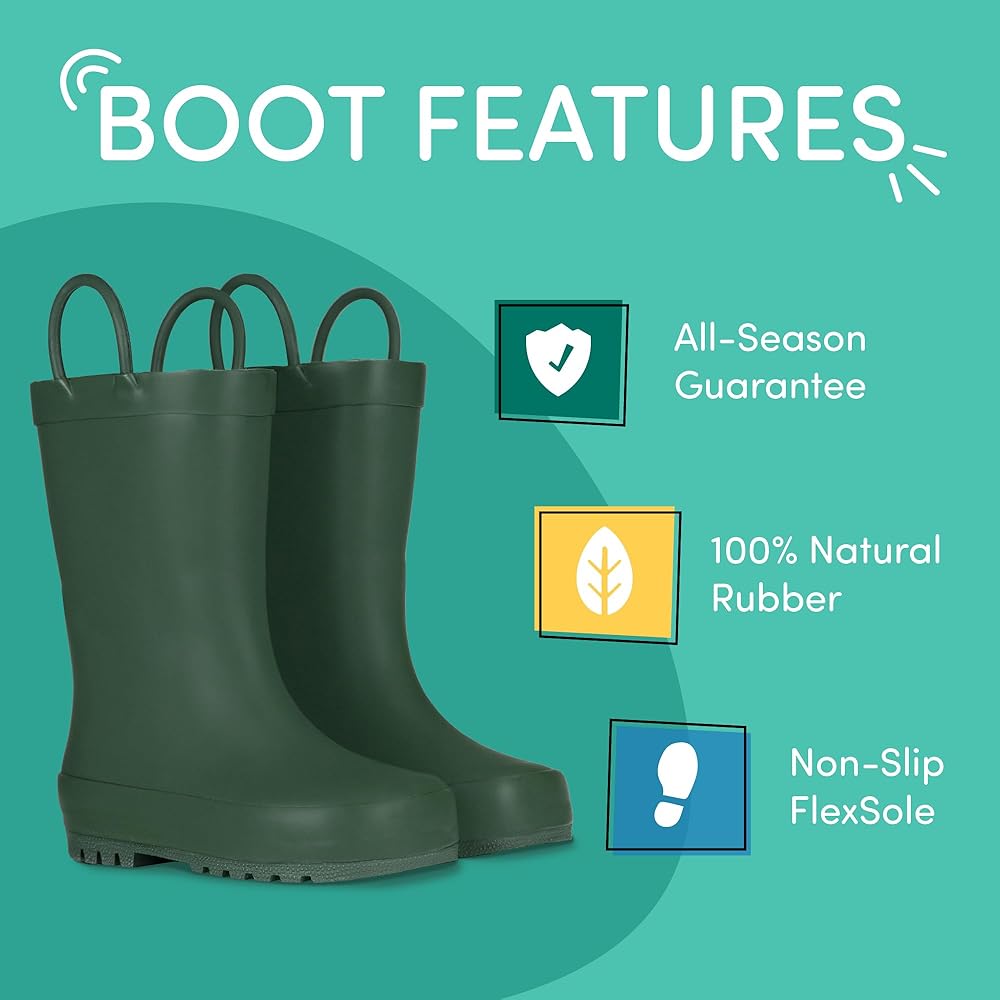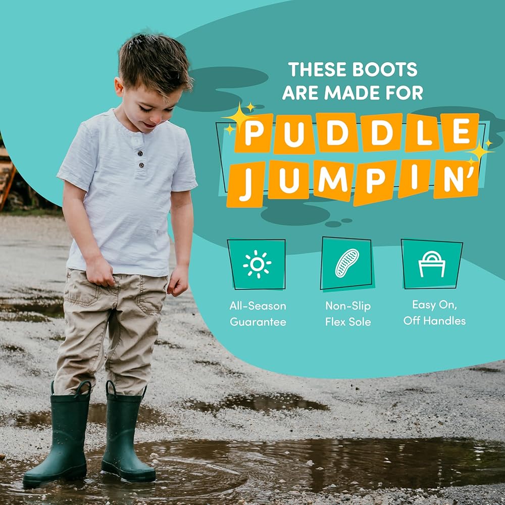 جاهزة لأي شيء - تضمن الأحذية المطاطية المتينة استعداد الأطفال الصغار لتغيير الطقس؛ حافظ على نظافة الأطفال وجفافهم خلال موسم الطين والربيع يقفزون مع الأحذية التي يمكن تنظيفها بسهولة بالمسح.
