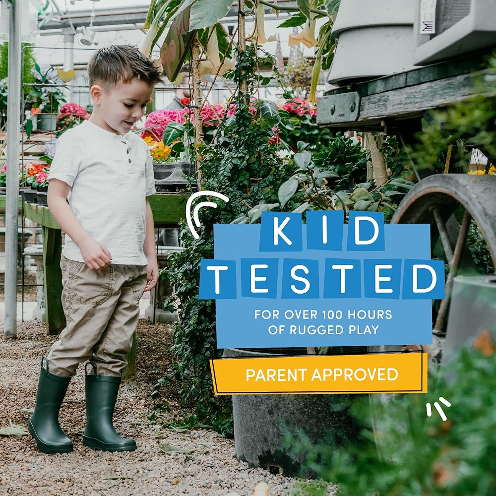 مقاومة للعب - لقد قمنا بتحديث تصميمنا لنقدم لك حذاء المطر بلون كون الأكثر متانة حتى الآن؛ مجموعة اليمنتري مصنوعة من مطاط خفيف الوزن، ونعل مرن مريح، ومداس متين مانع للانزلاق؛ تم اختباره لتحمل أكثر من 100 ساعة من النشاط دون درزات أو تسريبات.