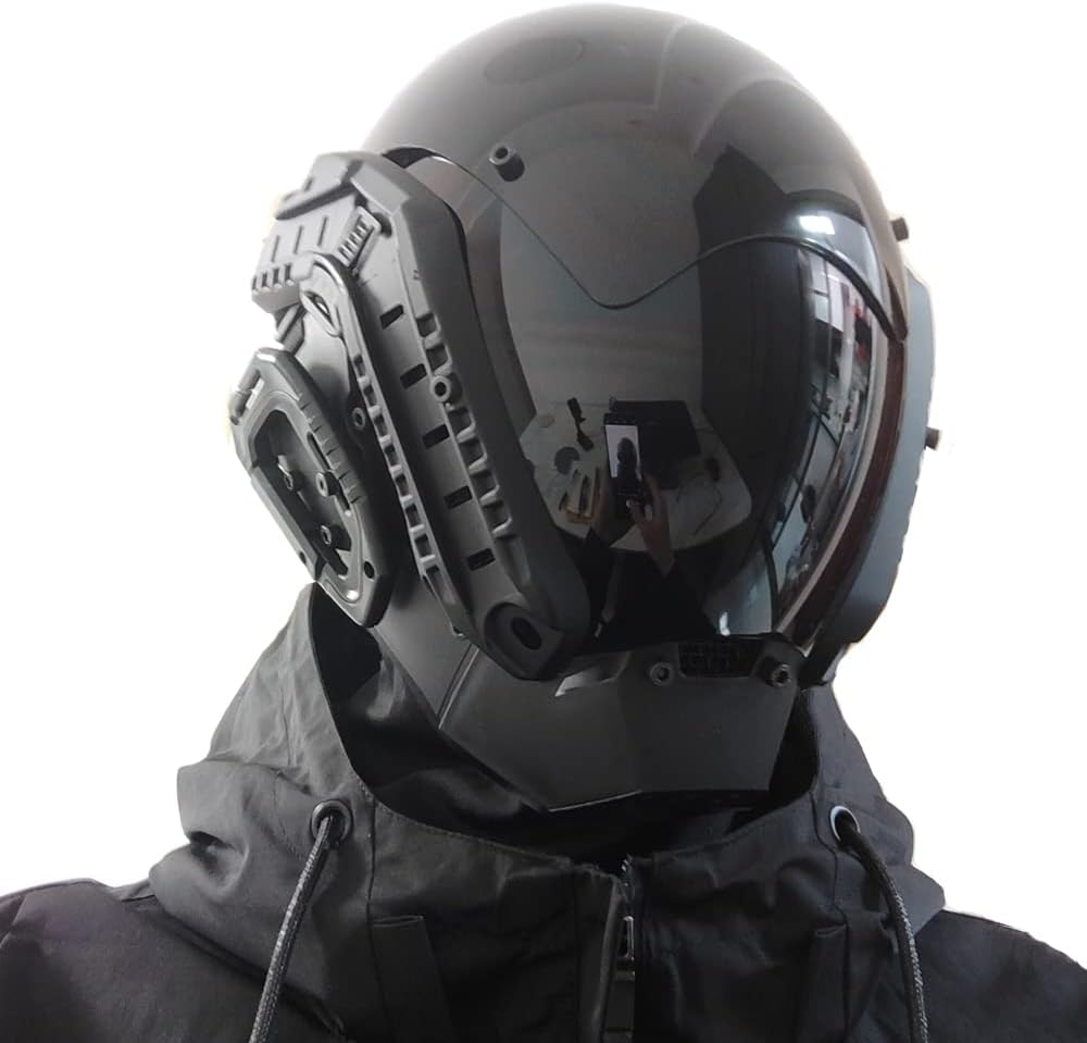 خامة عالية الجودة: هذا القناع التنكري مصنوع من مادة البولي كربونات عالية الجودة، وهو صلب ومتين، ولكن لا يمكن استخدامه في ألعاب airsoft، يرجى توخي الحذر.