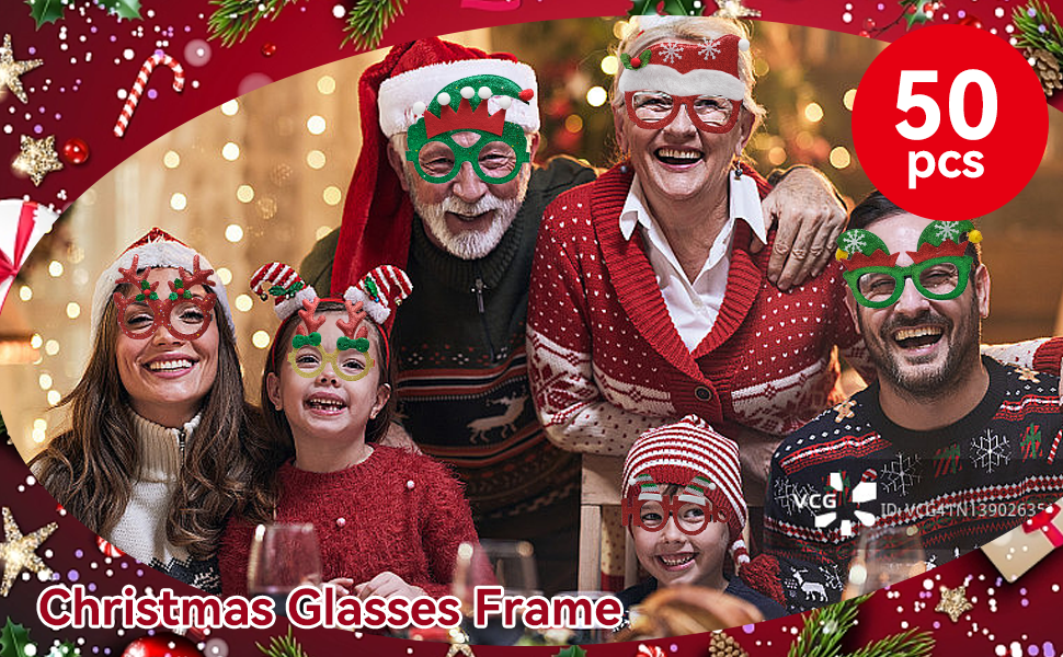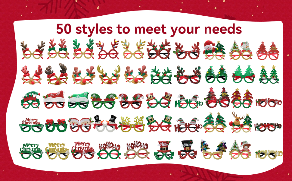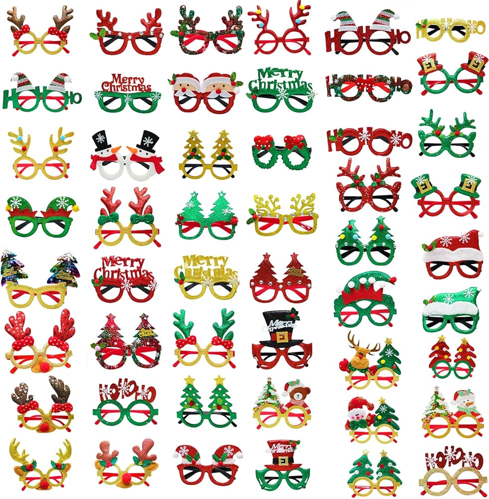 🕶️ عبوة المجموعة - سوف تحصل على 50 قطعة من نظارات تزيين حفلات عيد الميلاد في 50 نوعًا مختلفًا من الأنماط، قطعة واحدة لكل نمط، الكمية الكافية كافية لتلبية احتياجات الديكور الخاصة بك، كما يمكنك مشاركتها مع عائلتك.
