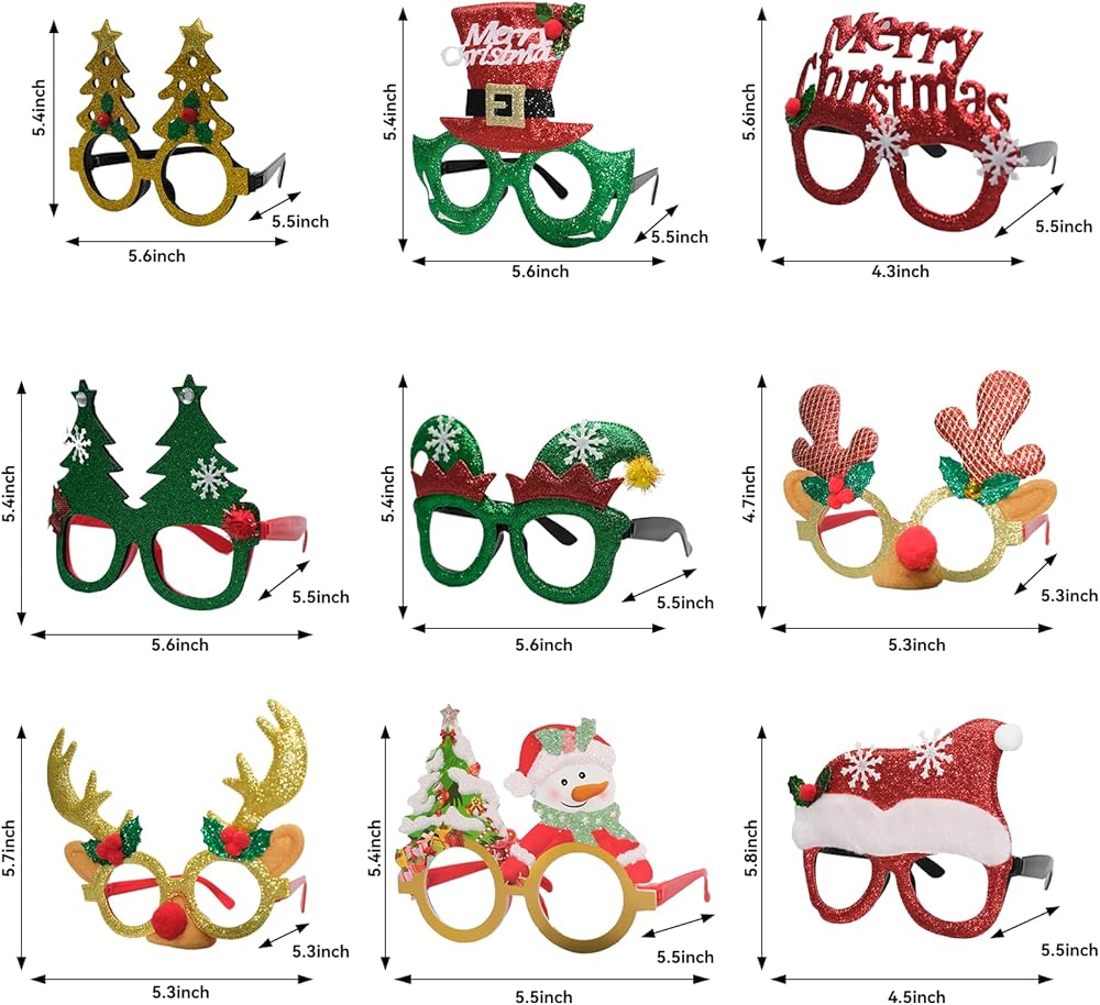 🕶️ تصميم كلاسيكي - جميع نظارات الكريسماس هذه مزينة بعناصر عيد الميلاد الكلاسيكية، مثل أشجار الكريسماس، وسانتا كلوز، والرنة، وقبعات الكريسماس، وندف الثلج وأكثر من ذلك، لطيفة ومضحكة، يمكنك ارتداء نظارات الحفلات الرائعة هذه في حفلات الكريسماس لتجعلك أنيقًا ولكي تكون محط اهتمام الجمهور، اجعل يوم عيد الميلاد الخاص بك مثيرًا للإعجاب ولا يُنسى.