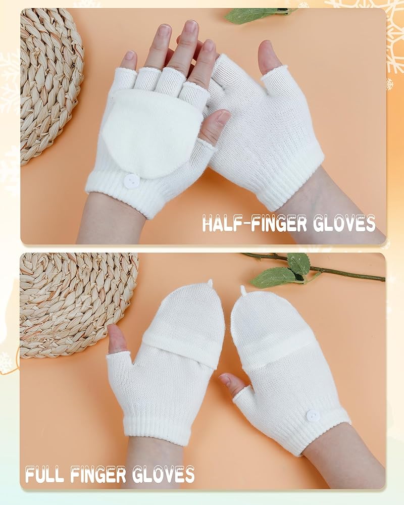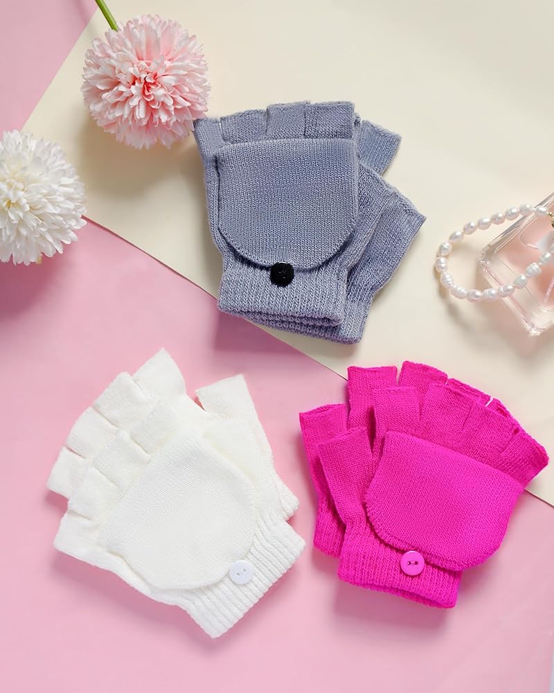 تصميمان - قفازات القفاز بتصميمين لارتداء الأطفال. يكشف التصميم بدون أصابع عن أصابعك وهو مناسب للأطفال الذين يلعبون بالخارج والكتابة واستخدام الهاتف. يمكن للقفازات القابلة للطي أن تغطي أيدي الأطفال من الرياح الباردة. مناسبة لكل من الأنشطة الداخلية والخارجية.