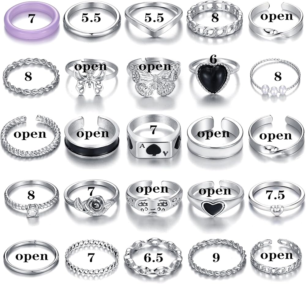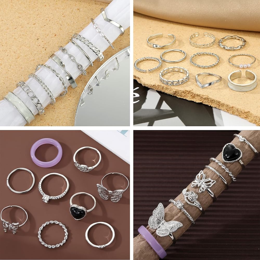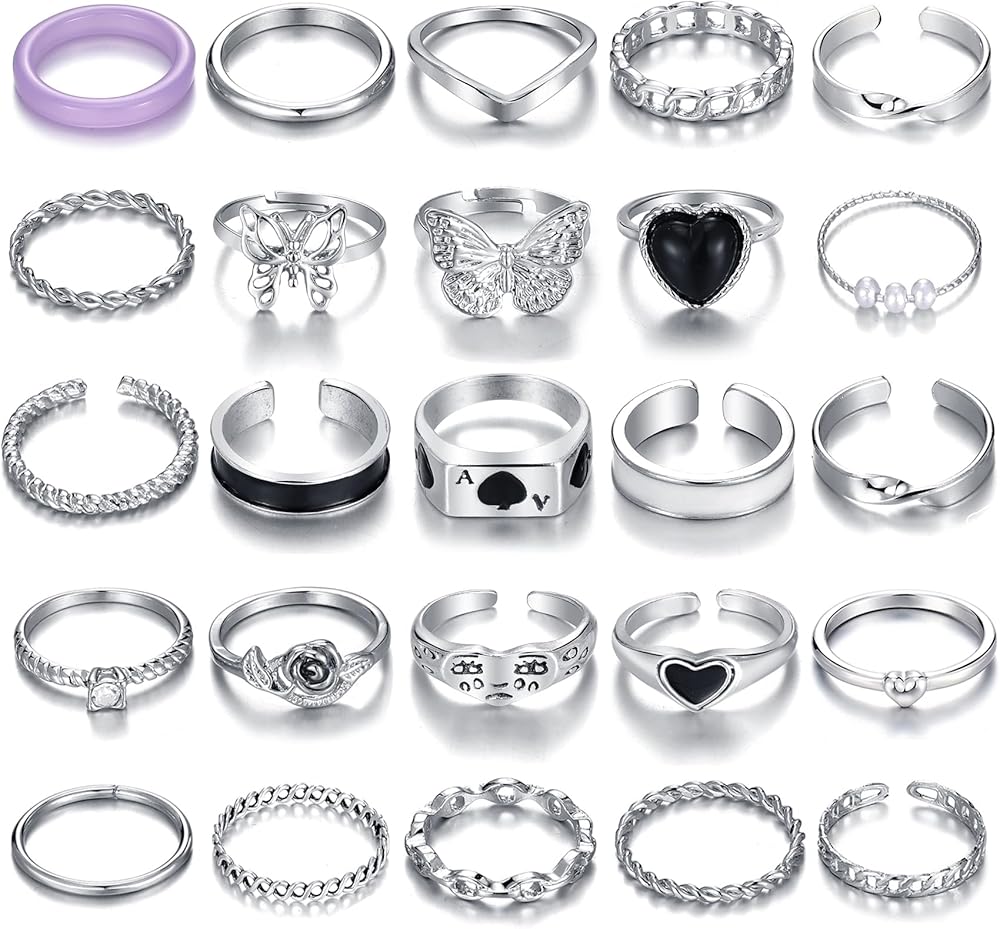 【Must-Have Rings Set】Elevate your style with our handpicked 25-piece silver knuckle rings set.Featuring chain twist, butterfly,heart,pearl and various fashion boho vintage styles,multiple ways of stacking makes you unique every day