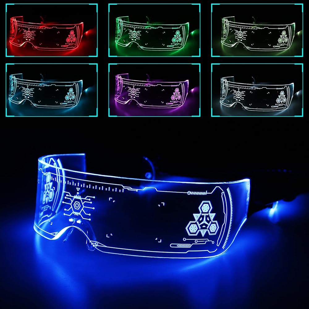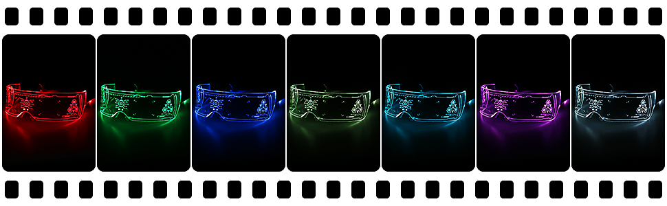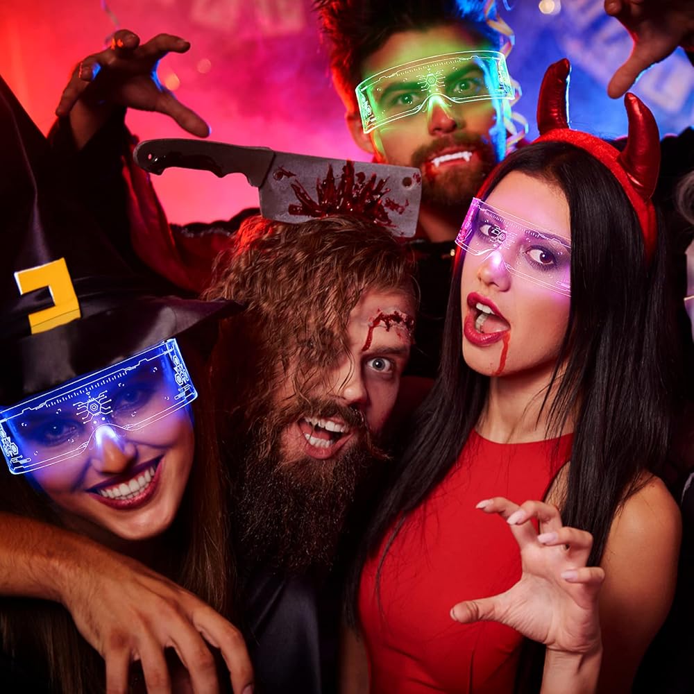 نظارات LED من MEILI LED بـ7 ألوان، 4 أوضاع مضيئة مضيئة مضيئة لنظارات أضواء احتفالية الهالوين الإلكترونية