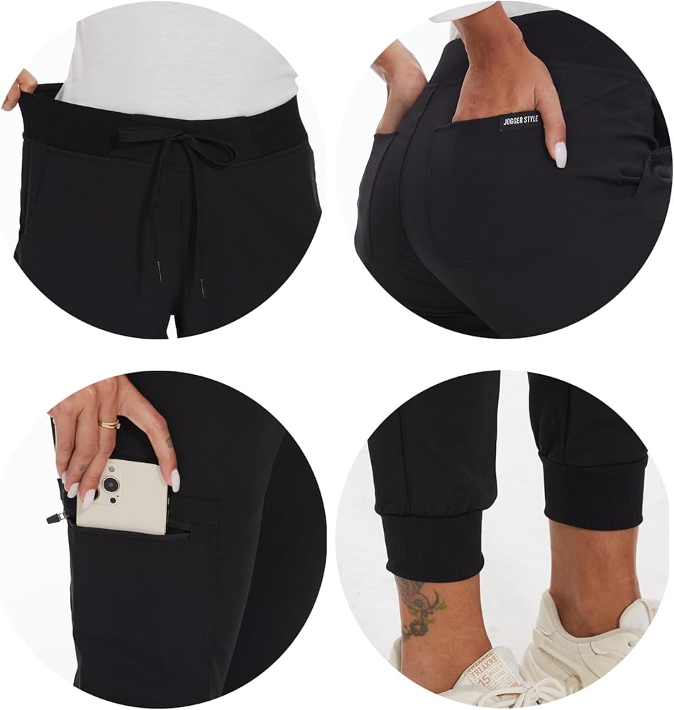 Comfortable Fabric : Crafted with a moisture-wicking and 4-way stretchy fabric, these black scrub pants offer a soft and breathable feel that keeps you comfortable all day long. Say goodbye to restrictive workwear and hello to Comfortable fit!