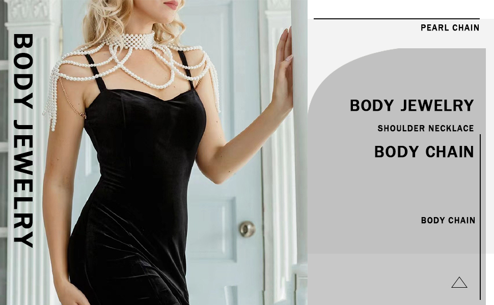Pearl shoulder chain is made of environmental protection material pearl and zinc alloy chain,Not easy to fade,Body jewelry is sturdy and secure, Pearls are very shiny and consistent in color,It can be worn Over A dress Or A top ,The unique design will make you very attractiv