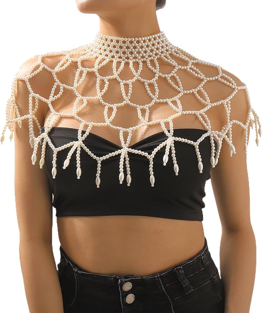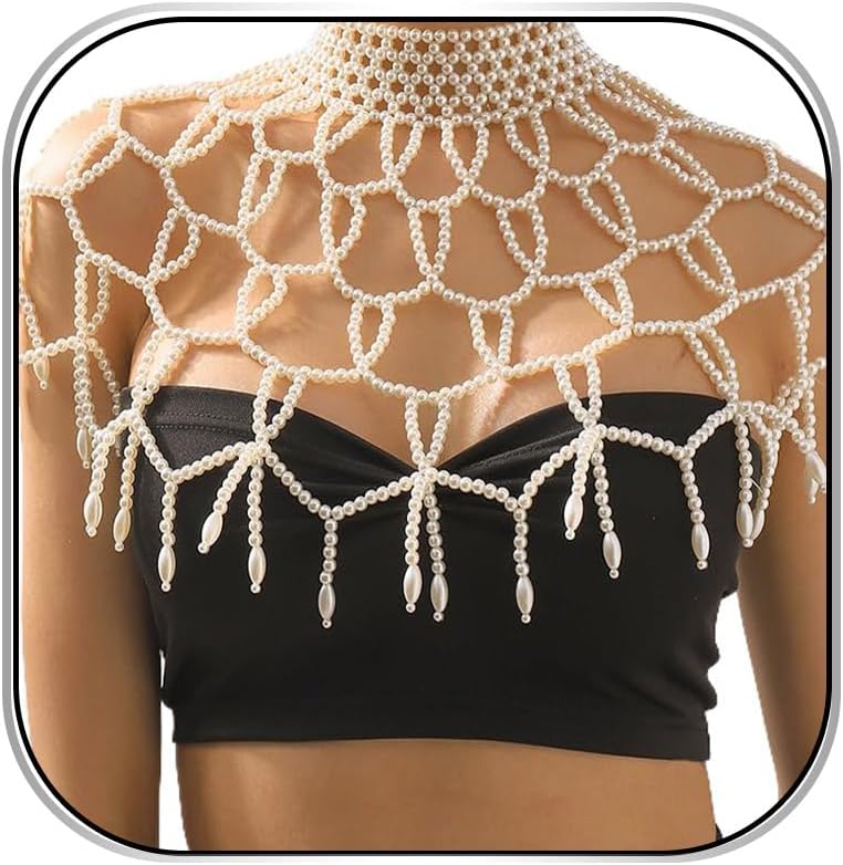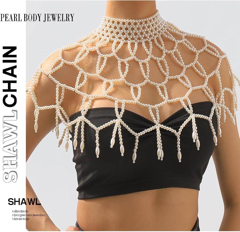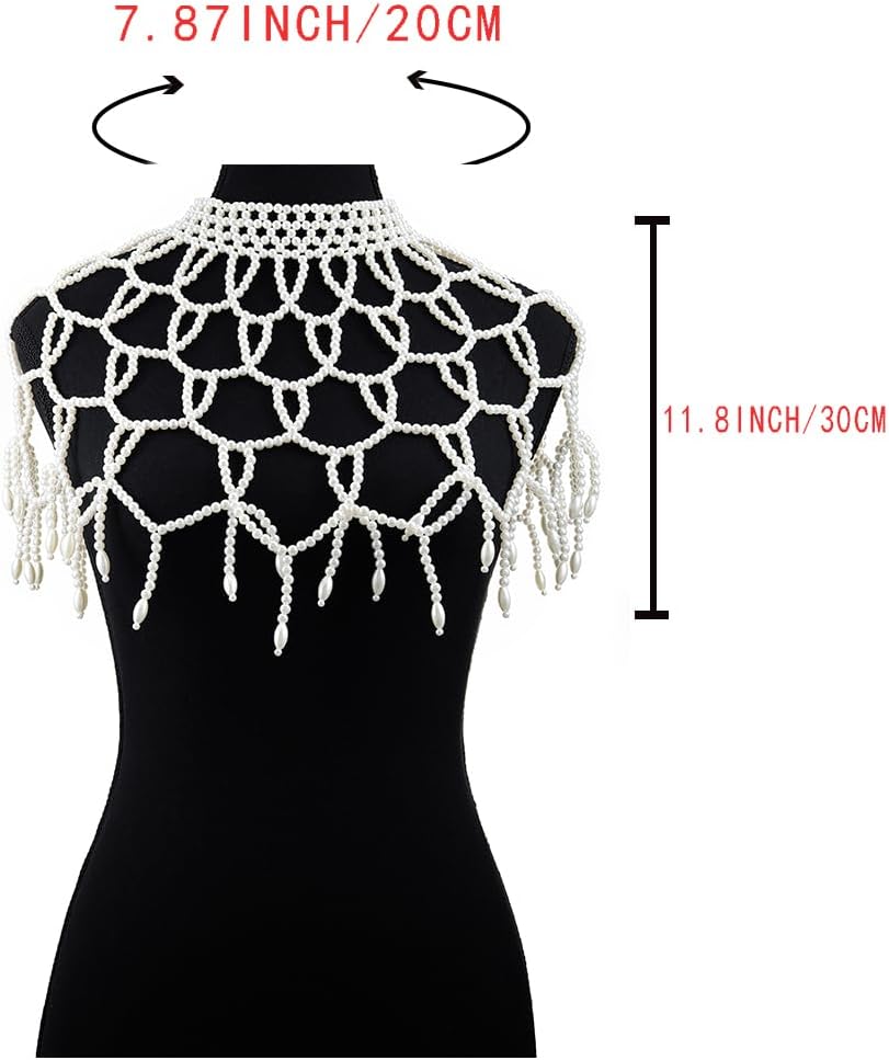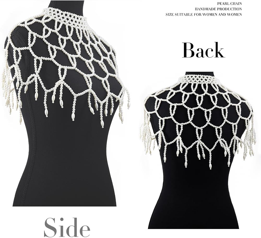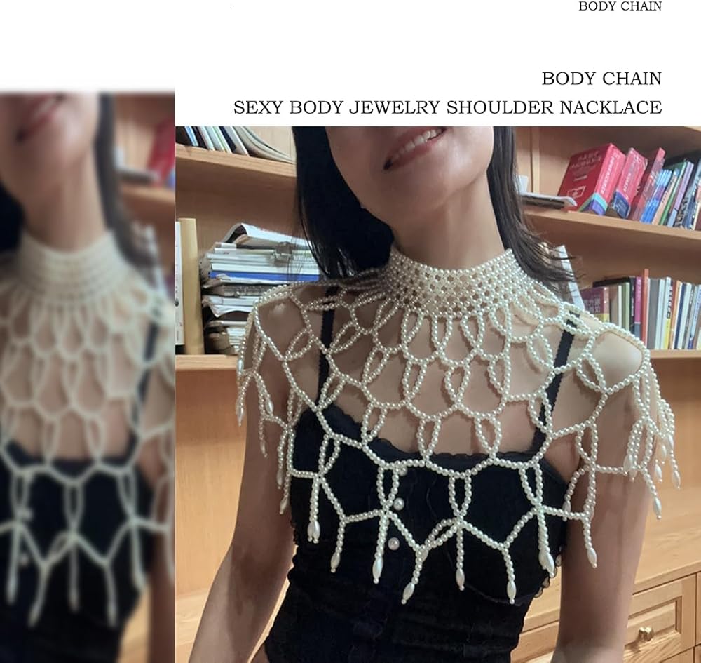 Shawl necklace body chain is made of handmade from white pearls,and its size is fit women well, It can be adjustable appropriately with the extended chain,You can adjust the necklace and chest according to your preferences.So you don't worry about the length