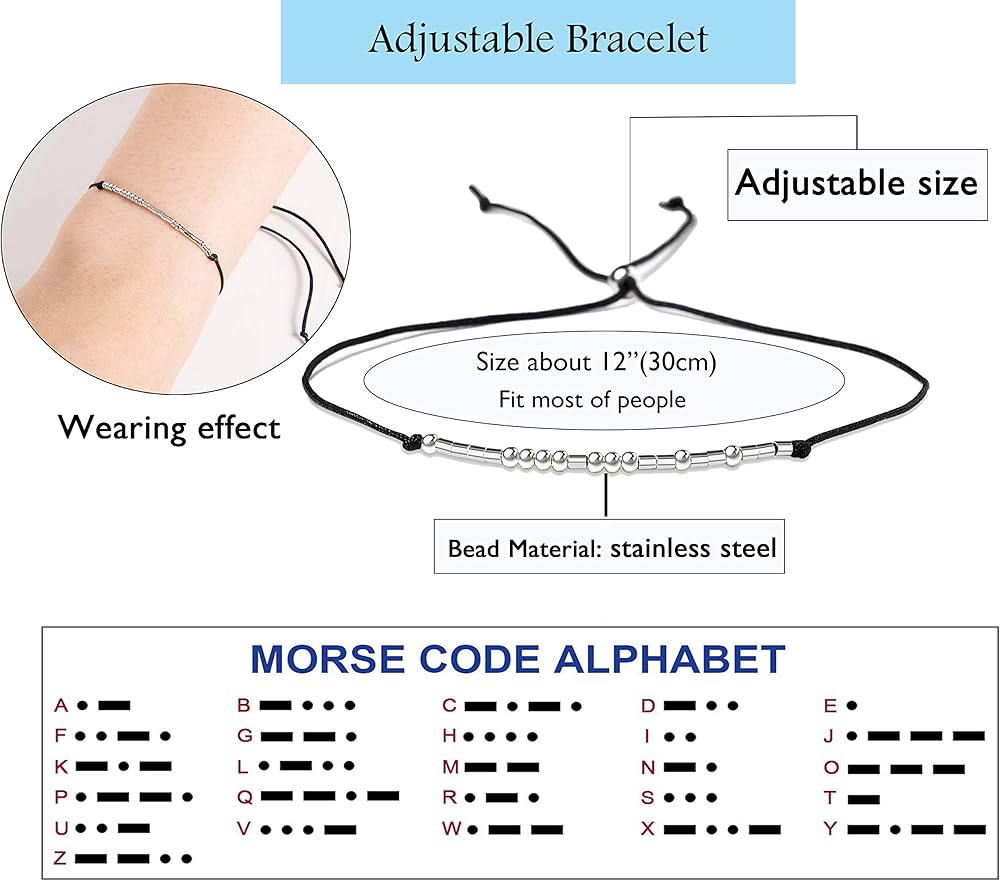 تغليف الهدايا: السوار ملفوف في صندوق هدايا مجوهرات كلاسيكي. تُعد أساور Dainty Morse Code أفضل الهدايا للأصدقاء. ذكّرهم أنك ستكون هناك دائمًا من أجلها. واحدة لك، وواحدة لي.