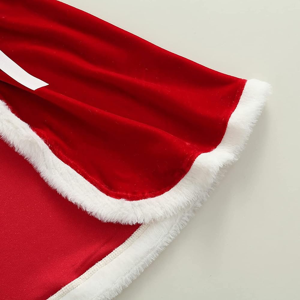 Features --- This warm winter Christmas cosplay costumes use fashion neckline lace-up design, a circle of white fur decoration looks more lovely, makes your baby so cute and fashion. It can be matched with dresses, skirt sets, rompers, T-shirts, sweaters, coats, Christmas hat, boots, etc for a Christmas look.