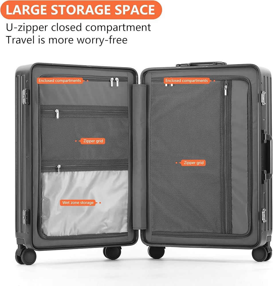 【مواد عالية الجودة】: تتميز حقيبتنا بإطار من الألومنيوم عالي القوة وغطاء من البولي كربونات المقاوم للصدمات، مما يضمن قدرتها على تحمل قسوة السفر. قل وداعًا للقلق بشأن الانبعاجات والخدوش، ومرحبًا برفيق الأمتعة الموثوق به الذي يصمد أمام اختبار الزمن. مع مزيج مثالي من الأناقة والقوة، تم تصميم هذه الحقيبة لتجعل أمتعتك مميزة في أي حشد من الناس.