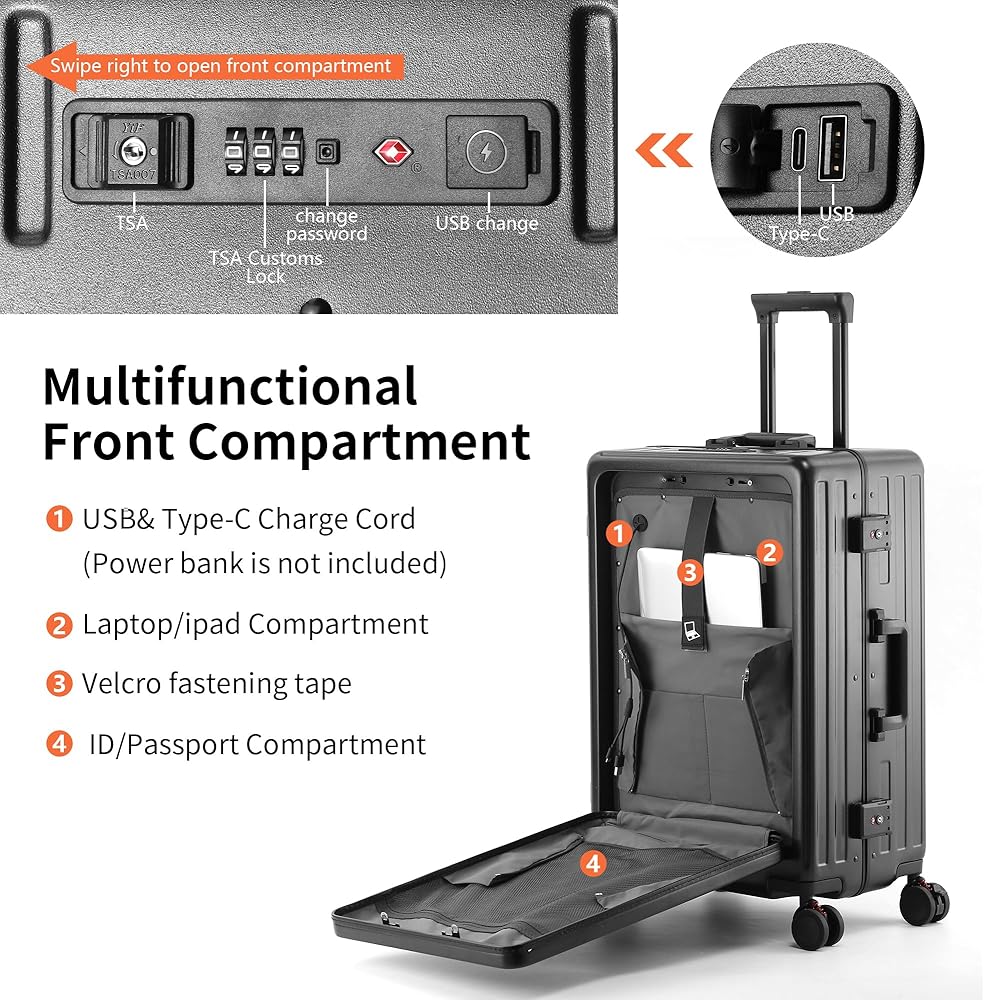 【منفذ USB/Type-C】: ابق على اتصال أثناء التنقل! تتميز حقيبتنا بمنفذ شحن USB مدمج ونوع C (بنك الطاقة غير متضمن)، مما يضمن بقاء أجهزتك تعمل بالطاقة طوال رحلتك. لا مزيد من البحث عن منافذ البيع في المطار.
