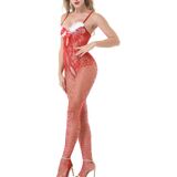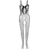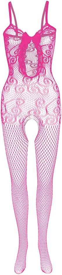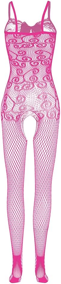 Sexy in this fishnet bodystocking features open crotch, keyhole front design details, floral lace pattern, full body stocking for women.
