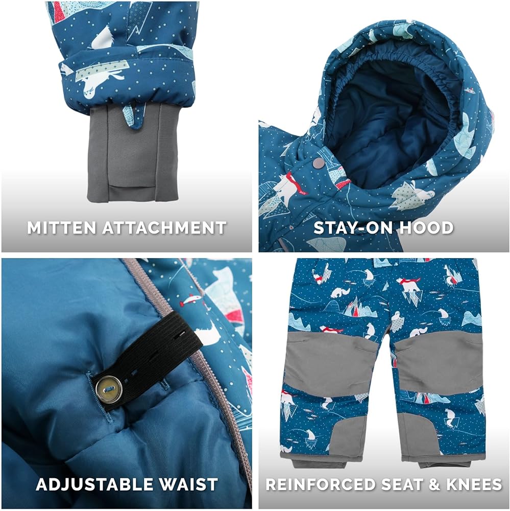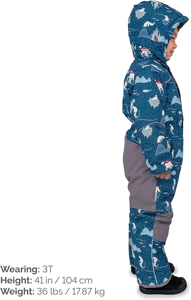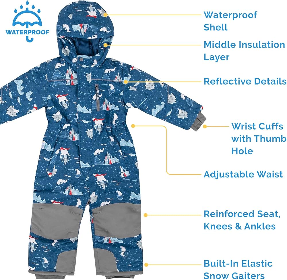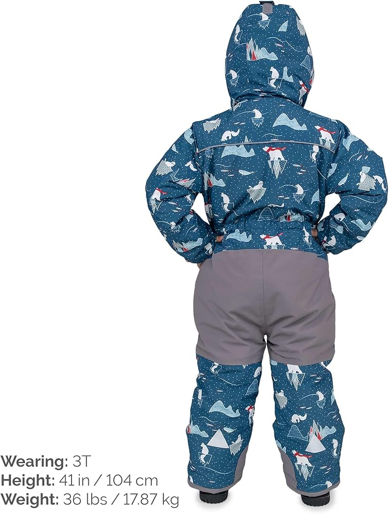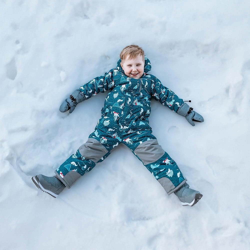 متينة: تم تصميم غطاء الثلج الخاص بنا للأطفال الصغار ليتحمل اللعب القاسي مع مقعد معزز وركبتين وكاحلين. مثالي للتزلج والتزلج وجميع أنواع الرياضات الشتوية مع معدل تهوية نشط للنسيج يصل إلى 5000 جم/م2/24 ساعة.