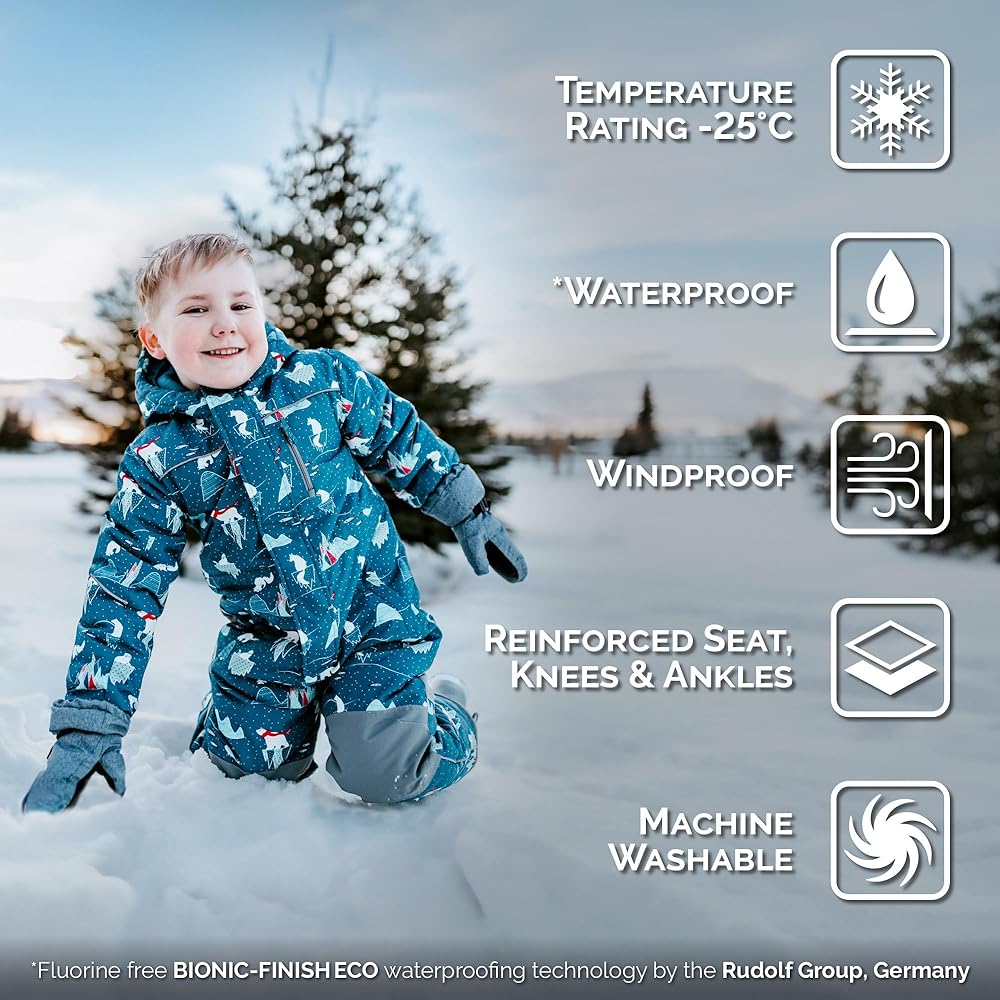 مقاومة للماء: بدلة الثلج للأولاد هذه مضمونة للحفاظ على جفاف طفلك مع تصنيف مقاوم للماء يبلغ 10,000 مم، معززة بغشاء داخلي مقاوم للماء وطبقات مبطنة مهمة.
