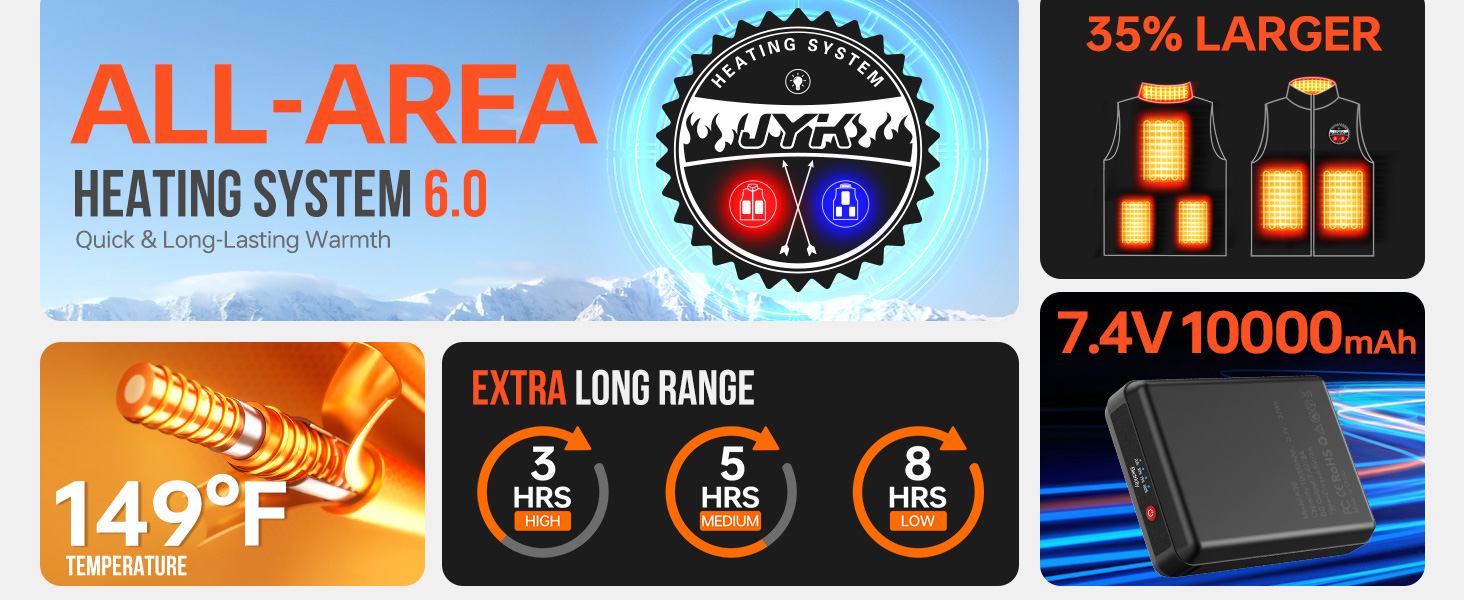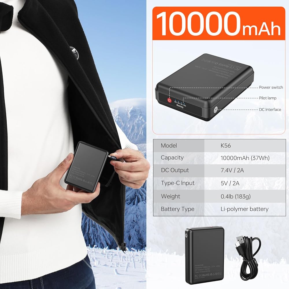 【دفء يدوم طويلاً 】: شحن سريع عبر بنك الطاقة المحمول والمريح بقدرة 7.4 فولت 10000 مللي أمبير في الساعة، وقت العمل يصل إلى 8 ساعات.