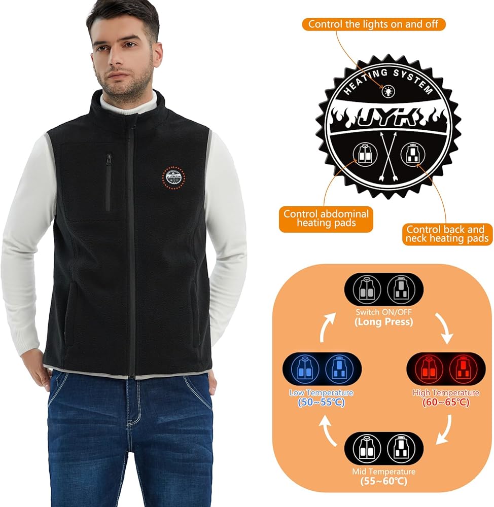 【الحفاظ على الدفء 】: عنصر تسخين مدمج من ألياف الكربون عالي الجودة، مع تقنية التسخين السريع، خفيف الوزن، مرن وآمن للاستخدام، 6 أجزاء تسخين، وهي: الرقبة، الظهر (ثلاث قطع)، البطن (اليسار واليمين) ، توفير الدفء لقلب الجسم.