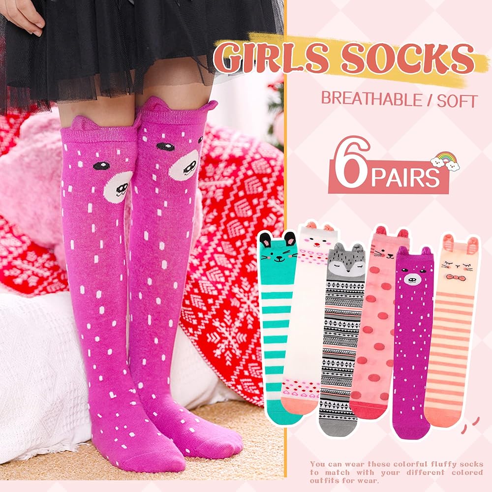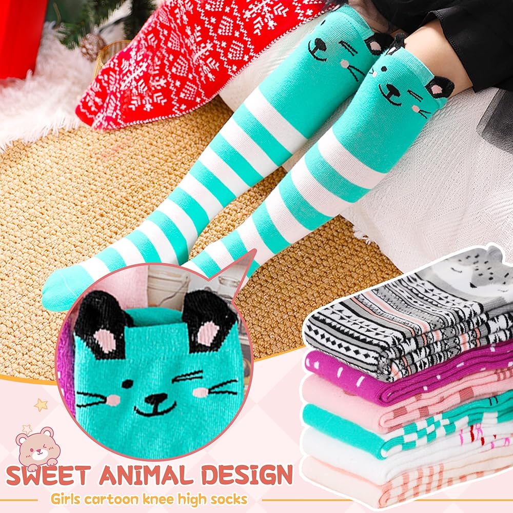 المقاس والطول: مقاس بلاط الجوارب الطويلة المجنونة للفتيات الصغيرات حوالي 15.74-16.53 بوصة/40-42 سم، يناسب معظم الفتيات من سن 3-12 عامًا. الجوارب الناعمة سواء فوق الساق أو فوق الركبة تعتمد على طول طول بناتك. الساقين.