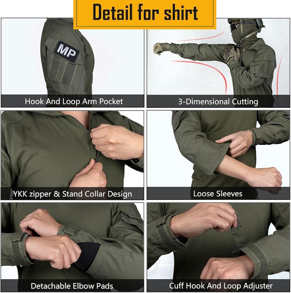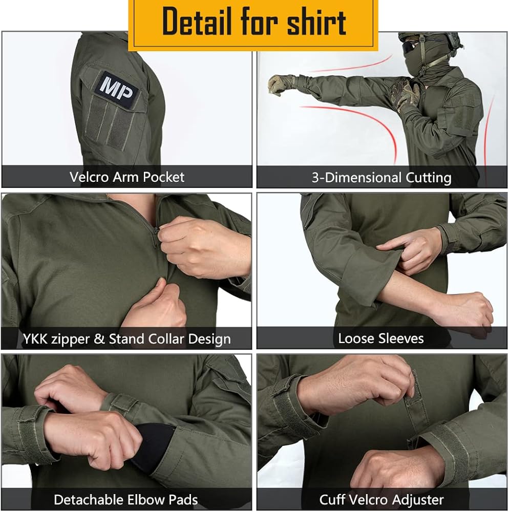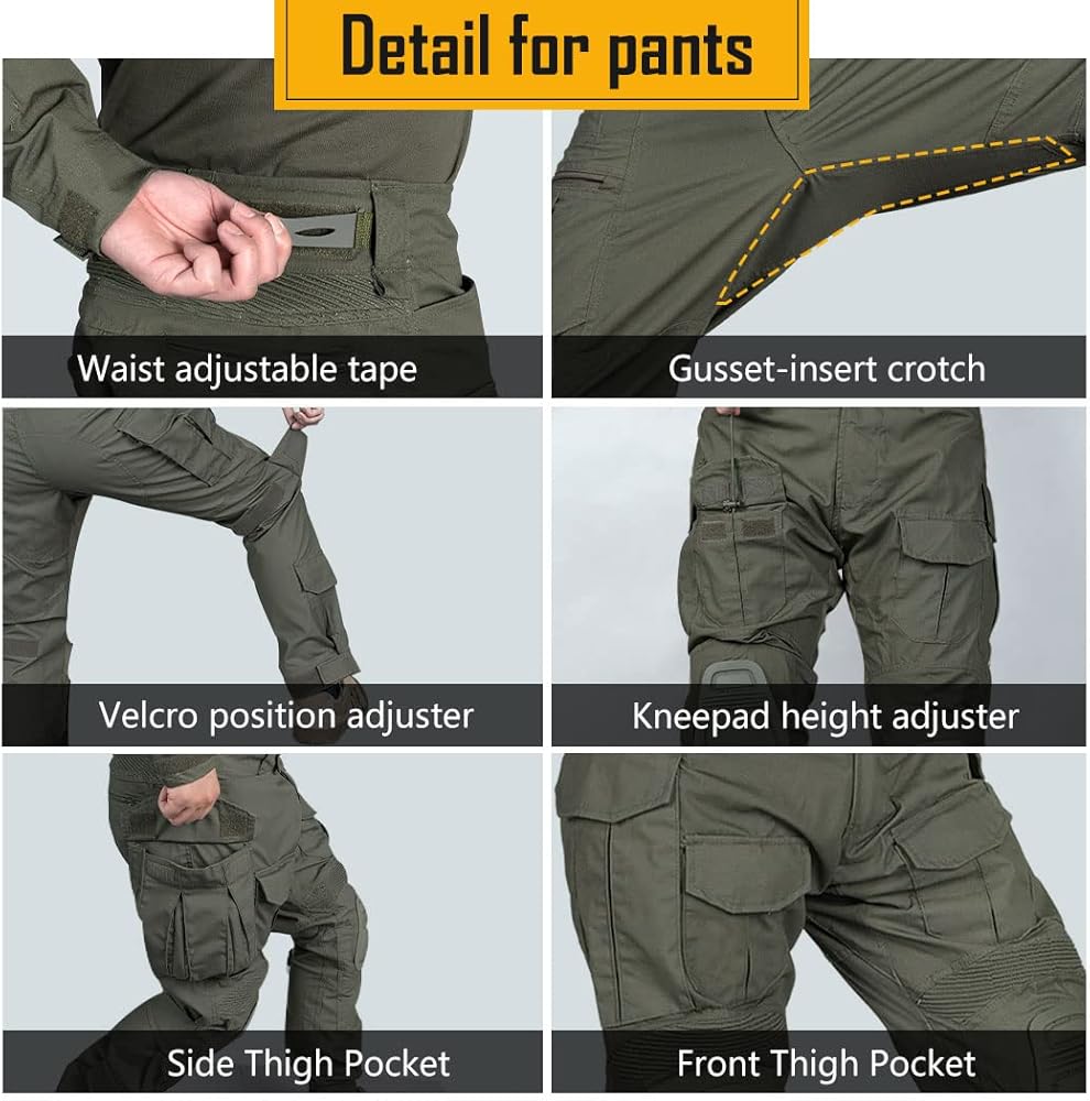 2.أ) إنه تصميم جديد للسراويل القتالية IDOGEAR G3. ب) يأتي مع وسادات الركبة القتالية القابلة للإزالة ووسادات الكوع المخفية. ج) نظام ضبط الخصر الفريد المنخفض ونظام ضبط ارتفاع وسادة الركبة يجعلها احترافية وعملية للغاية. د) تعديل الحجم في الجزء الخلفي من الخصر والركبة والكاحل. هـ) ما يصل إلى 10 جيوب بأحجام مختلفة، وقدرة حمل كبيرة. و) سحاب مع إغلاق فيلكرو، وجيبين على الورك مع سحاب للإغلاق.