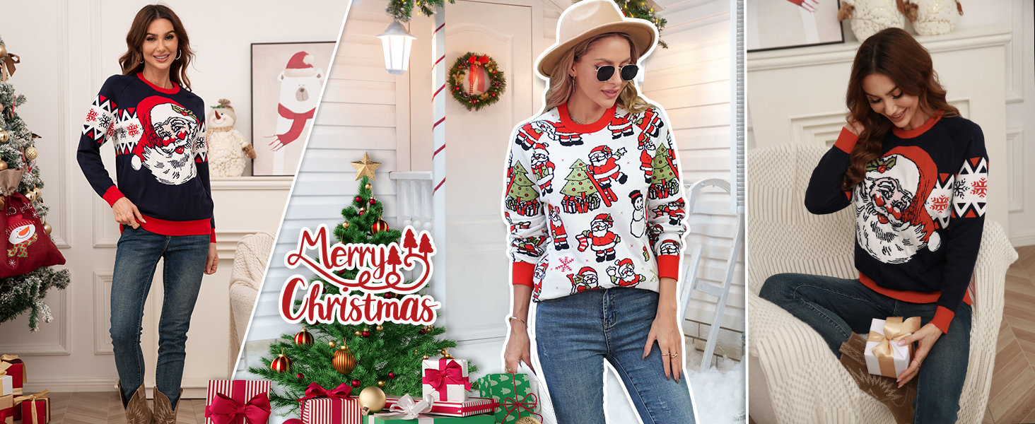التصميم: سترة عيد الميلاد القبيحة المضحكة تتميز بياقة مضلعة، وأساور أكمام وحاشية، ومقاس فضفاض. مع العديد من الأنماط اللطيفة التي تختارها، بما في ذلك سانتا كلوز، وحيوان الرنة الرائع، وشجرة الكريسماس، وندفات الثلج الكلاسيكية ونمط رجل الثلج. يمكن مطابقة هذه السترة مع السراويل الضيقة وأحذية الكاحل لجعلها مناسبة للطقس البارد.