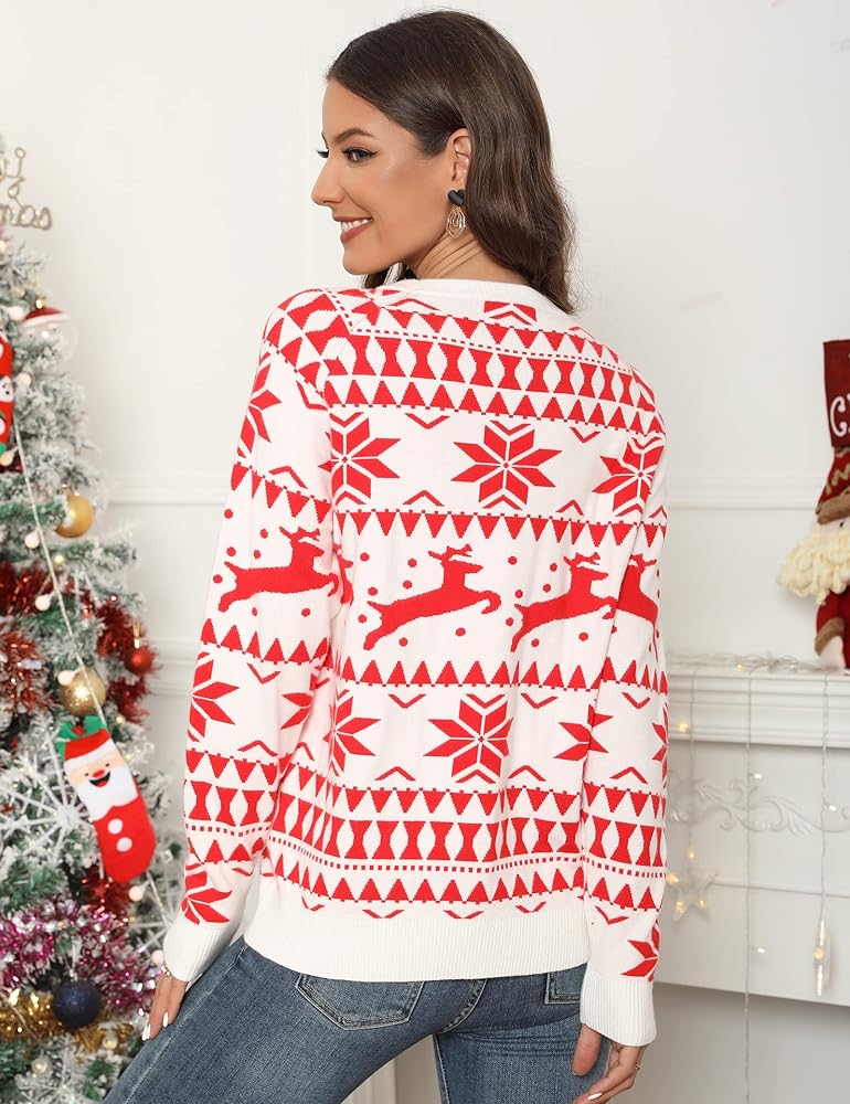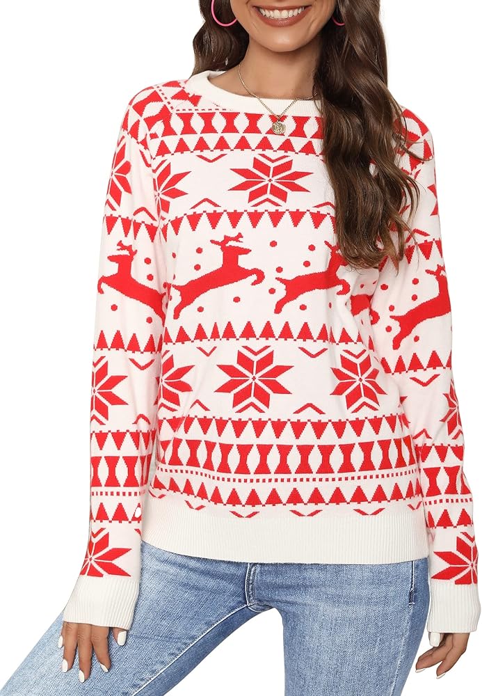 مطابقة: يمكن للسترة اللطيفة والمريحة ذات الرقبة الدائرية ارتداؤها بمفردها في الخريف، وتتماشى مع المعطف وأحذية مارتن في الشتاء. تعتبر هذه السترة الصوفية خيارًا مثاليًا لعائلتك وأي أصدقاء كهدية لعيد الميلاد.