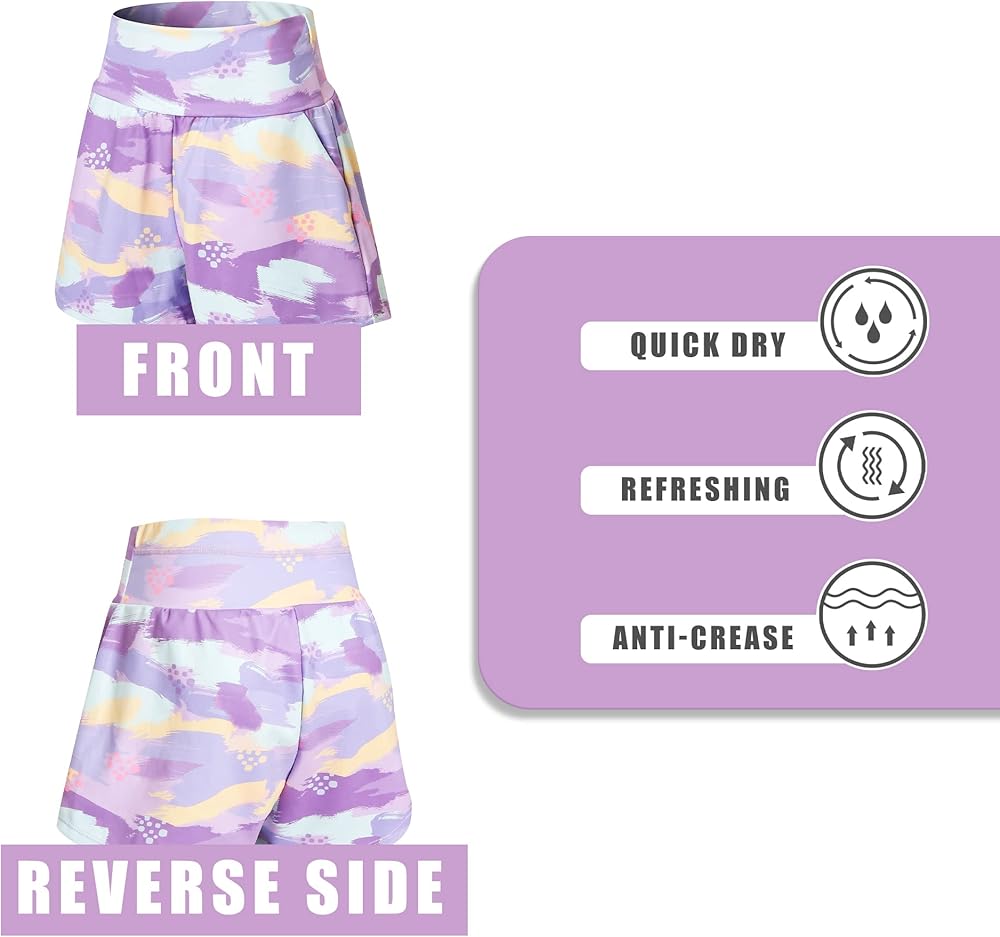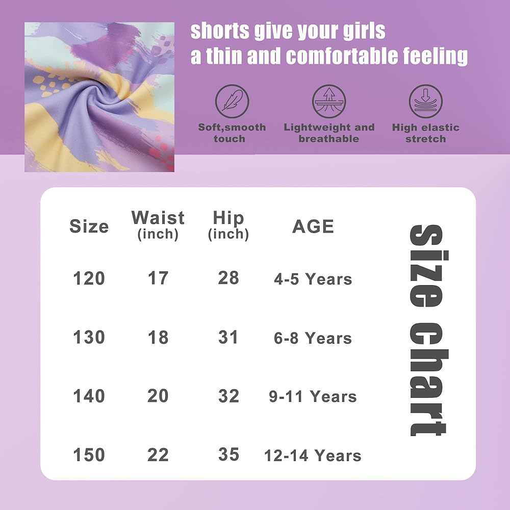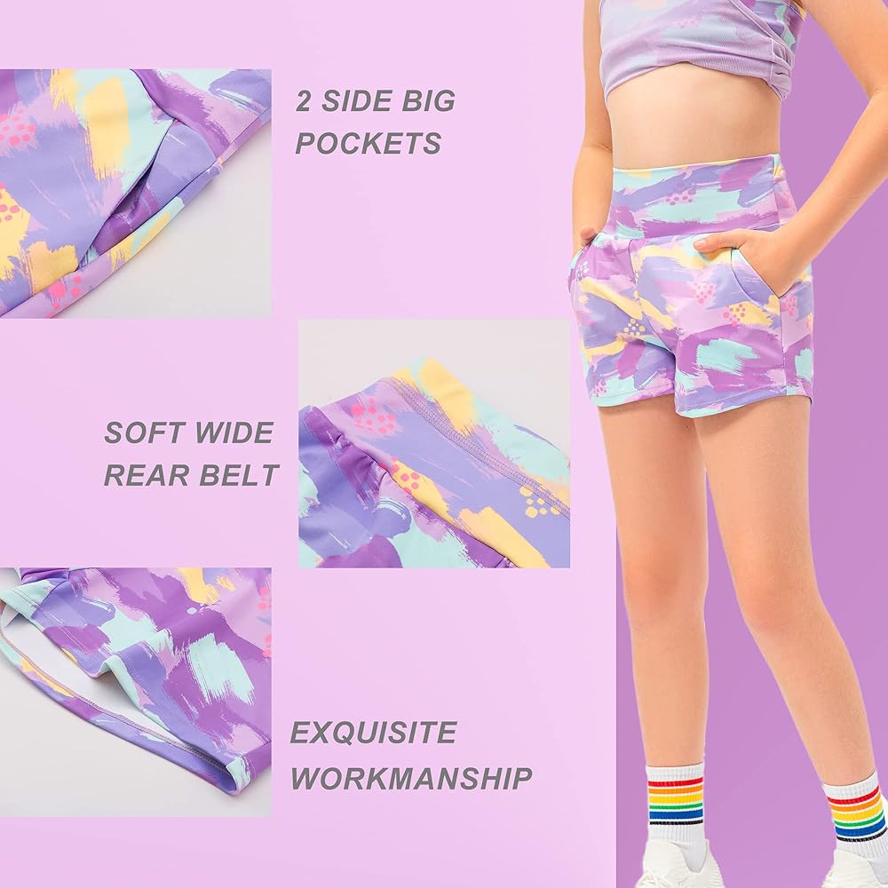 TECHNOLOGY SENSE COMFOR FABRIC: Girls athletic shorts are crafted with high-quality materials that provide a soft and smooth touch, while also with moisture-wicking and quick-drying properties, keeping the wearer cool and dry during physical activity. The lightweight, breathable and elastic fabric offers ultimate comfort and flexibility, making it the perfect choice for any active lifestyle.