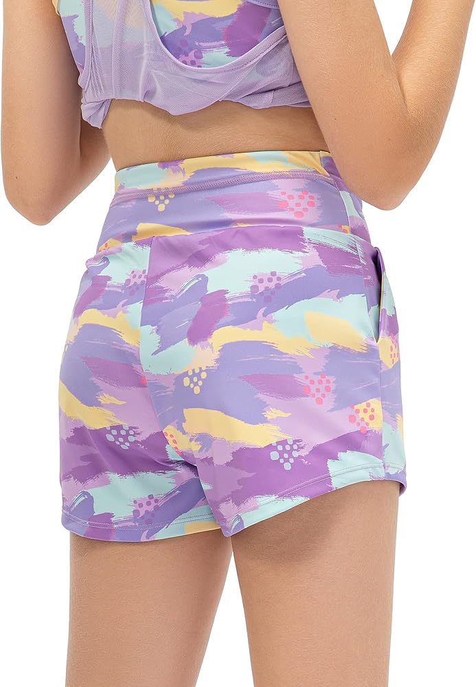 2 INVISIBLE UTILITY POCKETS: athletic shorts for teen girls feature a unique design with one side pocket on the built-in short and one pocket on the back waist, provide a convenient and secure place to store personal items like keys, money, or a phone.