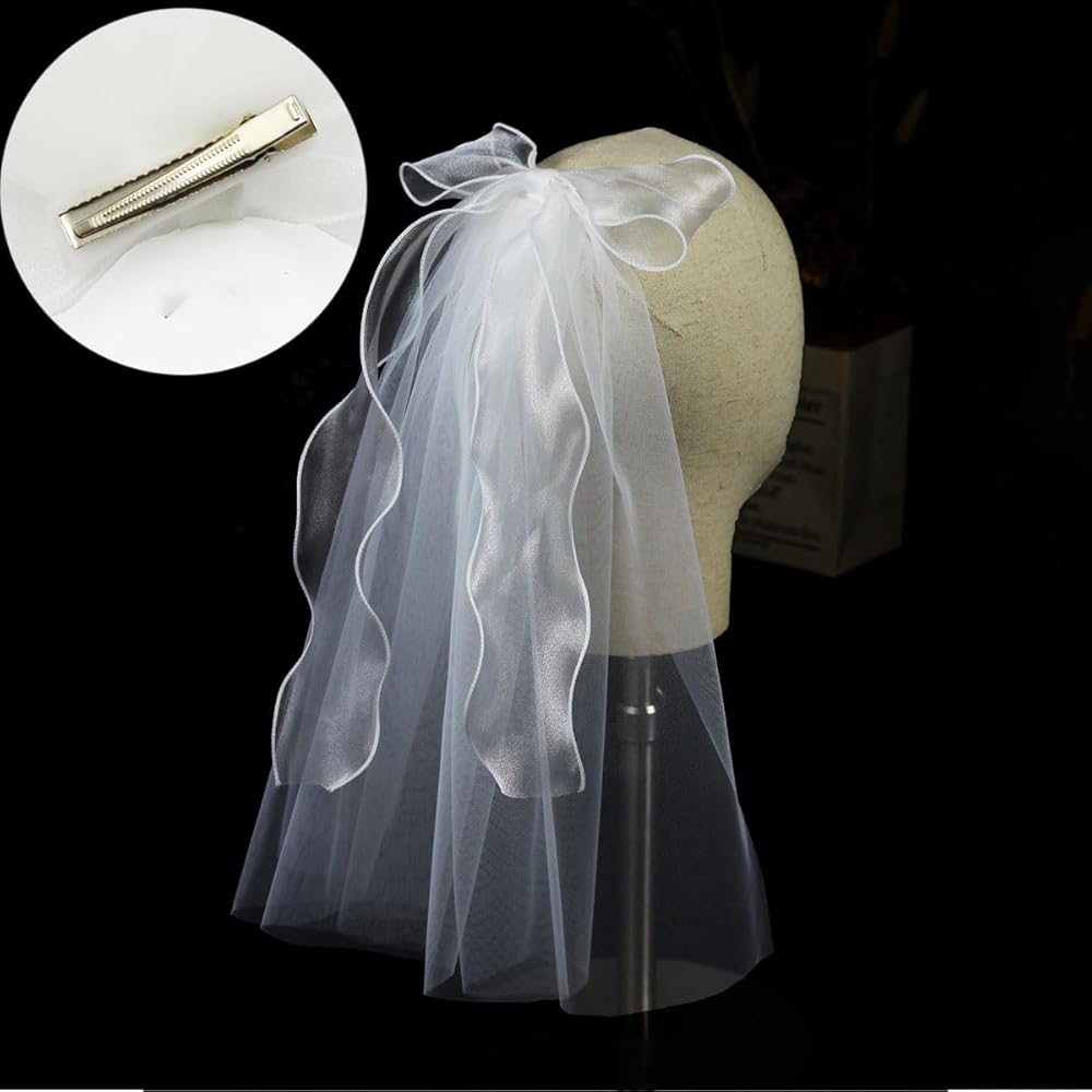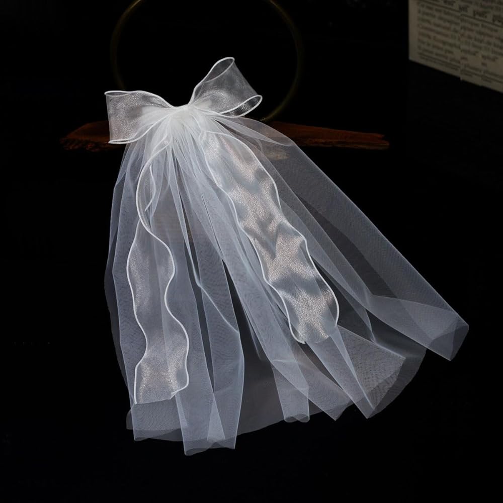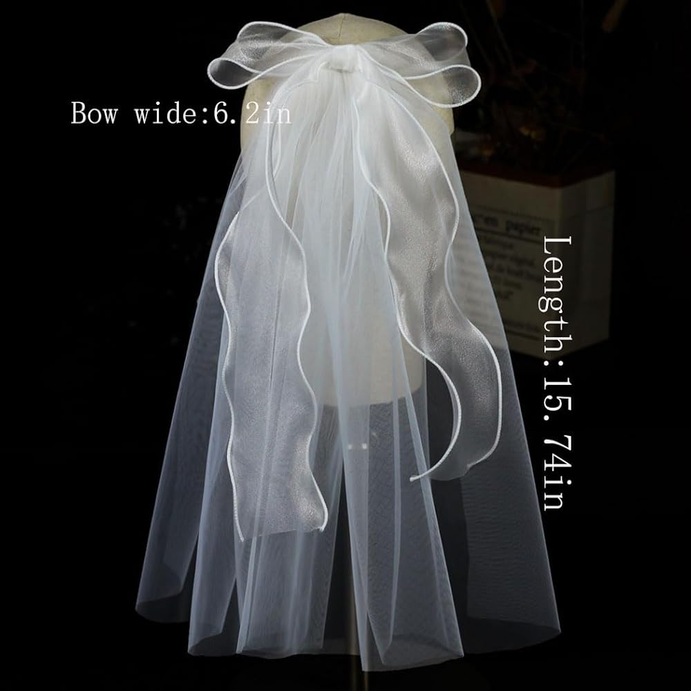 - Bridal hair bow veil is made of high quality soft tulle, unique in design, well made, soft and comfortable,with 1.96in clip, very easy to wear.