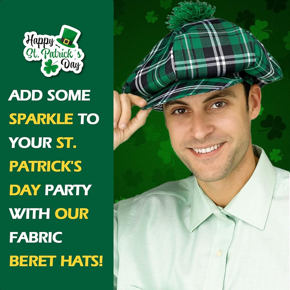 - ☘️【مجموعة أزياء عيد القديس باتريك】قطعة واحدة من قبعة فيدورا أو قبعة بيريه باللون الأخضر لعيد القديس باتريك