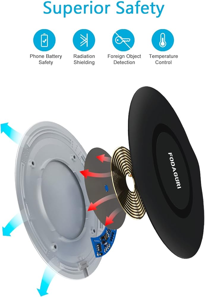 🔋【رفيعة للغاية】تتميز لوحة الشحن اللاسلكية بتصميم نحيف للغاية، بسمك 5 مم فقط، وحلقة وقاعدة سطح السيليكون تحافظ على هاتفك آمنًا في مكان الشحن المناسب. هذا الشاحن اللاسلكي صغير الحجم للغاية بحيث يمكنك الاحتفاظ به أو اصطحابه معك.