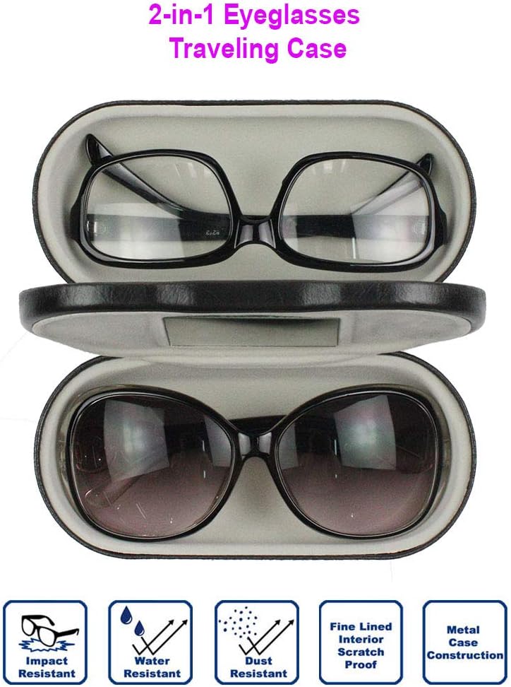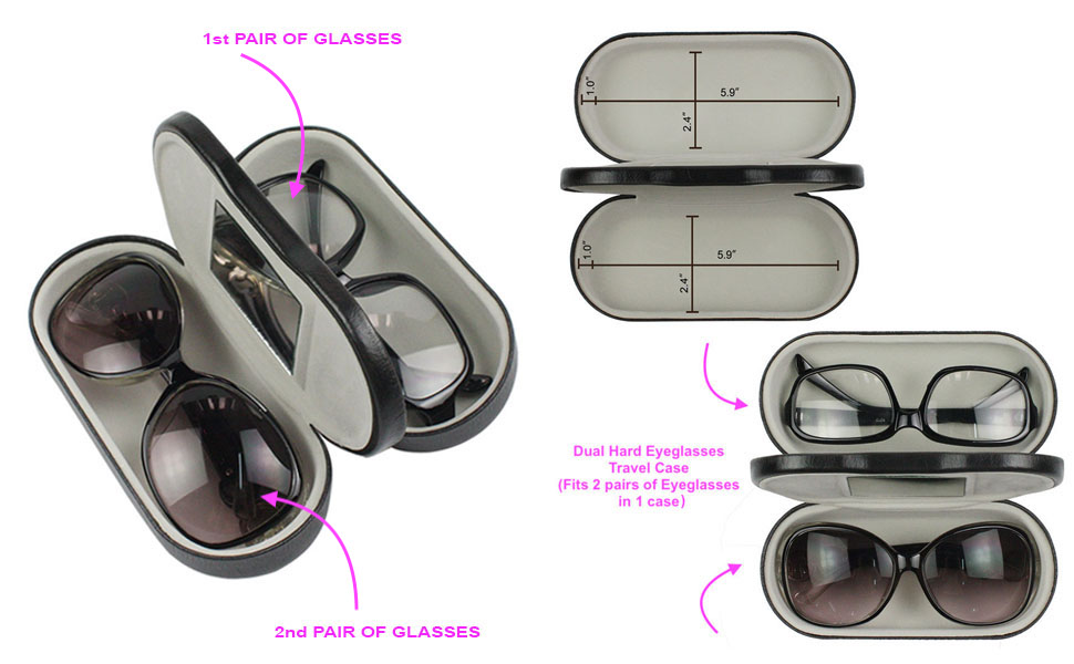 حقيبة سفر للنظارات الشمسية لأزواج متعددة: تم تصميم حقيبة النظارات المزدوجة الأنيقة هذه لحمل زوجين من النظارات الشمسية، بالإضافة إلى أنواع أخرى من النظارات، مما يجعلها آمنة من الأوساخ والغبار والخدوش.