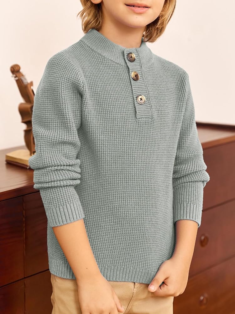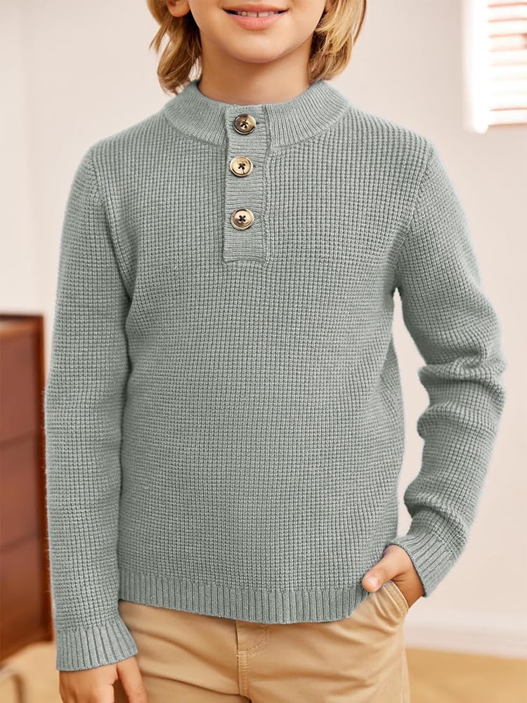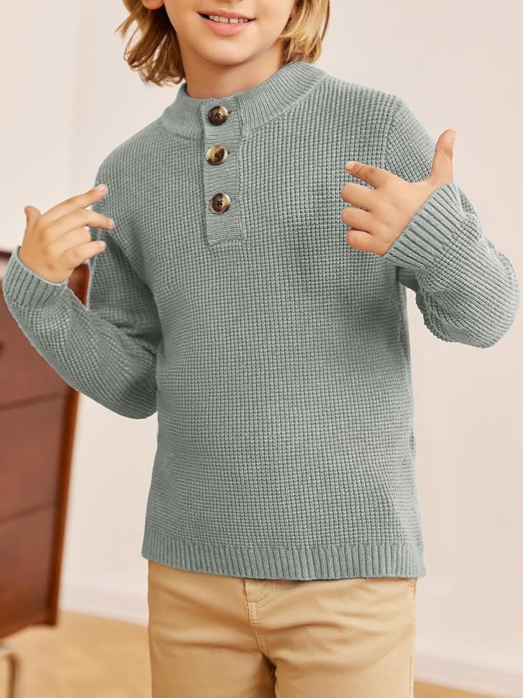 سترات للأولاد بياقة مدورة للأطفال، بلوفر بأزرار سفلية محبوكة للخريف والشتاء، ملابس من 5 إلى 12 سنة