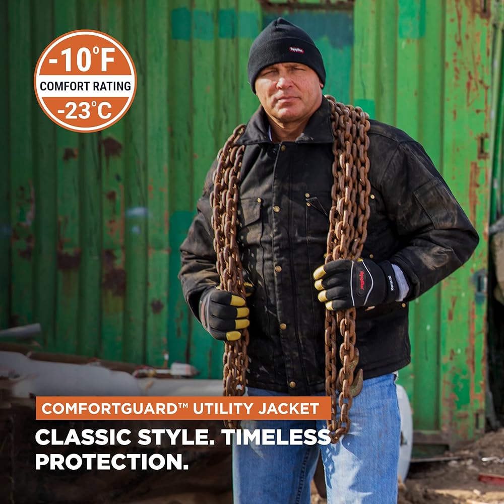 سترة رجالية معزولة: احصل على حماية جدية ودفء في البرد القارس مع إحدى سترات ComfortGuard المعزولة للرجال. ستبقيك سترة العمل شديدة التحمل للرجال مرتاحًا حتى -10 درجة فهرنهايت (-23 درجة مئوية) مع 7.5 أونصة. من ألياف البوليستر العازلة لحمايتك من الطقس المتجمد.
