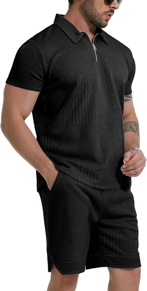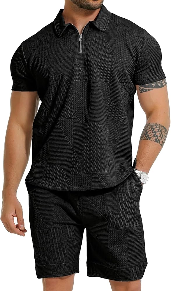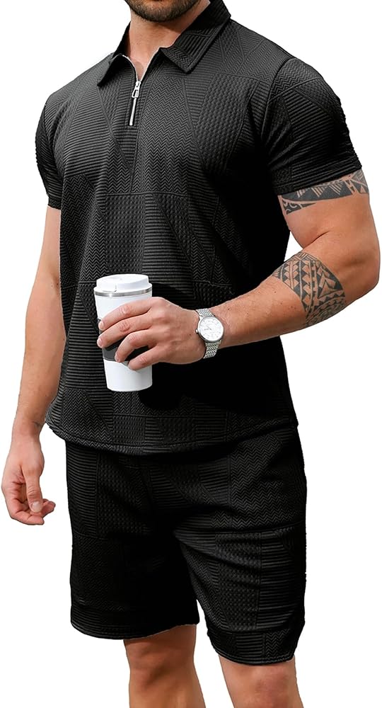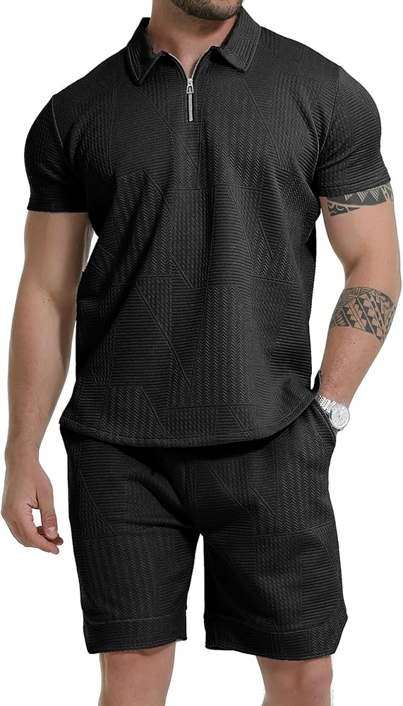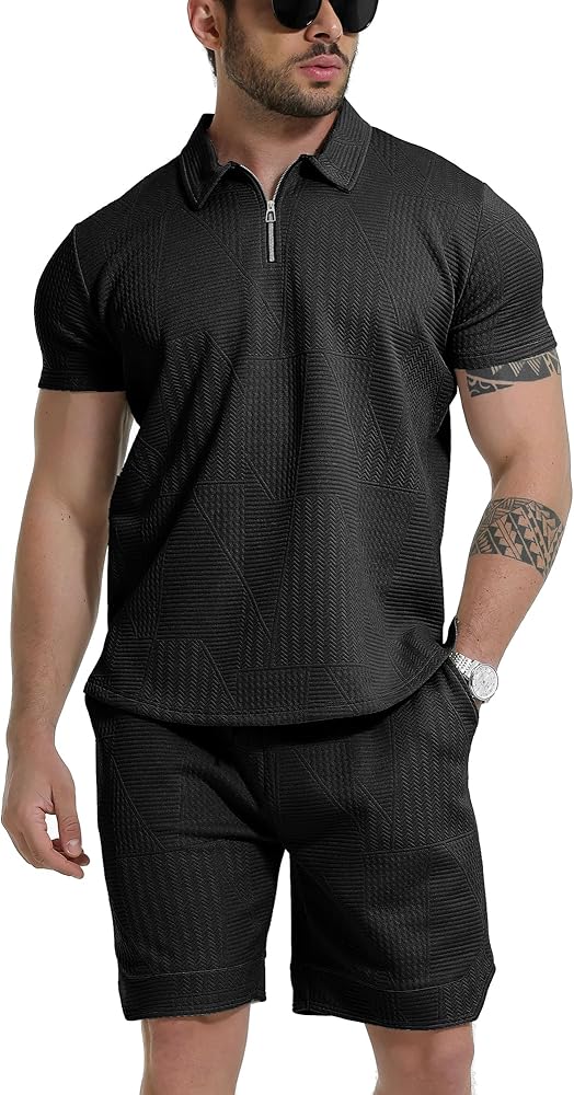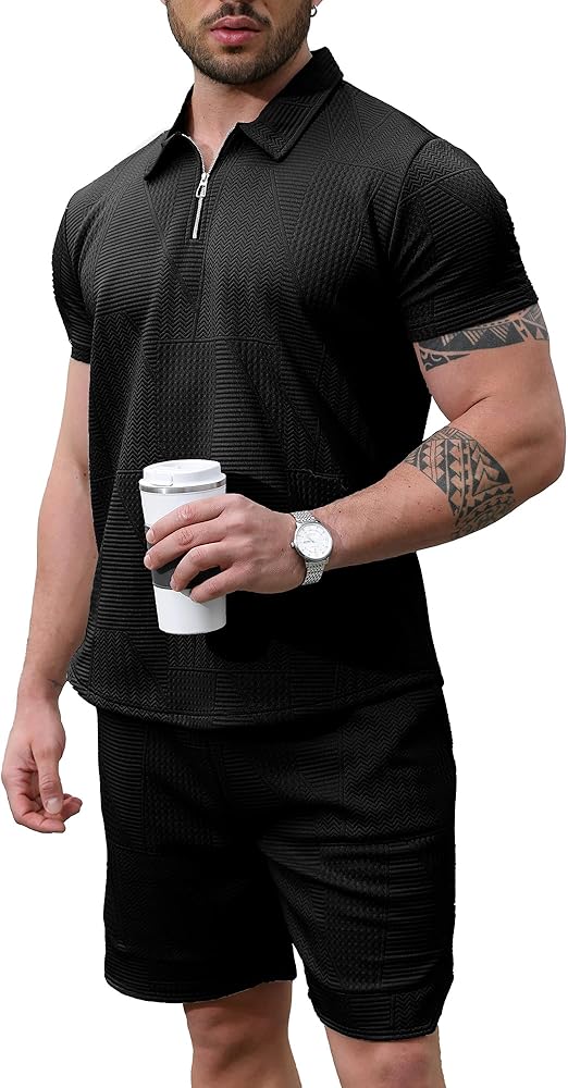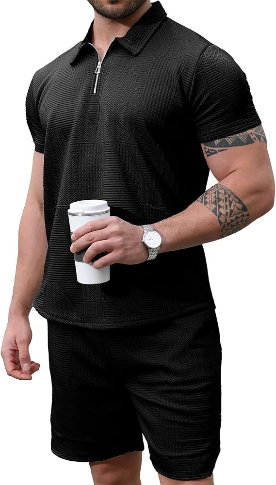 【رائعة للمناسبات】تتميز هذه البدلة الرياضية الكاجوال للرجال المكونة من قطعتين بمقاس عادي لا يتأثر بمرور الزمن لراحة دون مجهود. مناسبة لجميع المناسبات غير الرسمية والرياضية والأزياء والخارجية والعمل والغولف والمشي لمسافات طويلة ونادي الشاطئ وممارسة الرياضة واللياقة البدنية وما إلى ذلك.