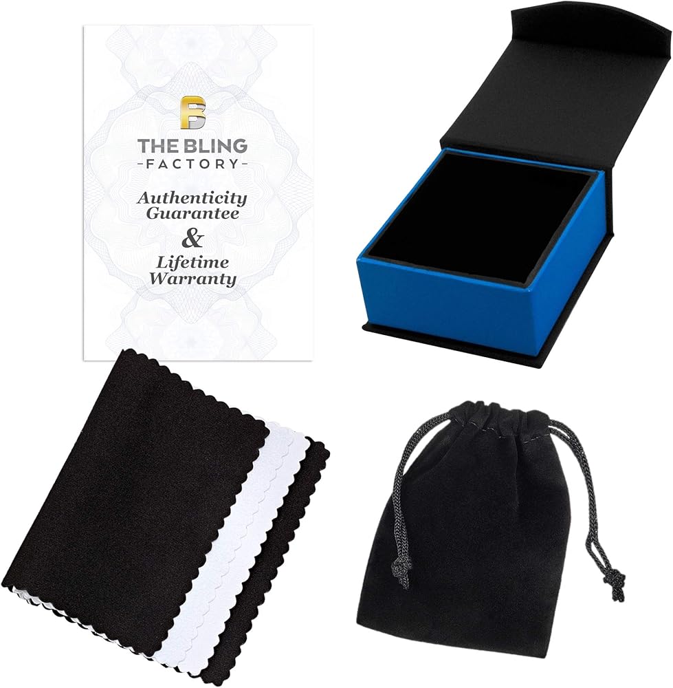 • Jewelry box, microfiber polishing cloth, & black velvet pouch included