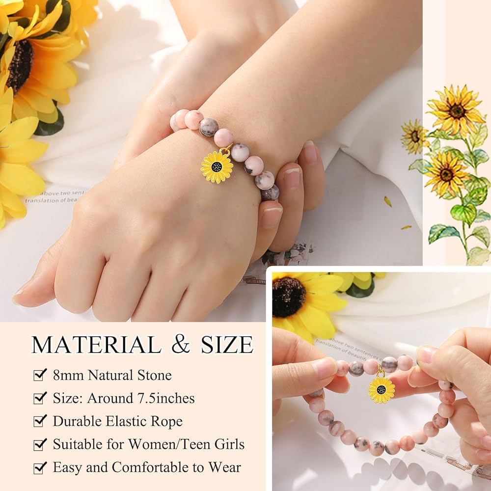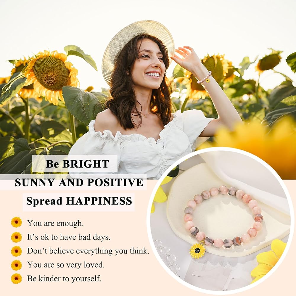 【هدايا عباد الشمس للنساء】-- اجلب الابتسامات والبهجة ليومها مع سوار عباد الشمس الجميل هذا! هذه الهدية للنساء ترمز إلى الإيجابية والصحة والسعادة. أخبرها بهذه الهدية الفريدة من عباد الشمس "ثق بنفسك وأحب نفسك".