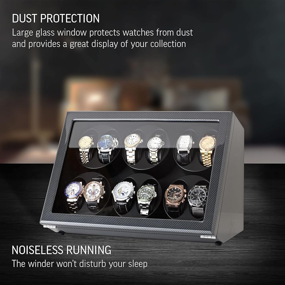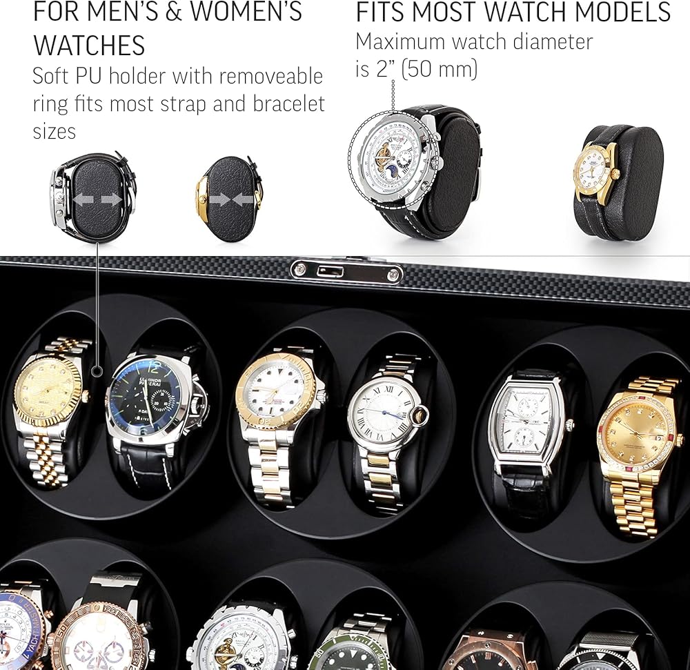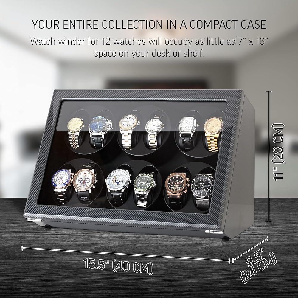 ⭐ مجموعتك الكاملة بالداخل: 12 فتحة للساعة تسمح لك بالاحتفاظ بمجموعة ساعتك في علبة صغيرة الحجم. يحتاج ملفاف الساعة إلى ما لا يقل عن 10 × 16 بوصة على مكتبك أو خزانة ملابسك.