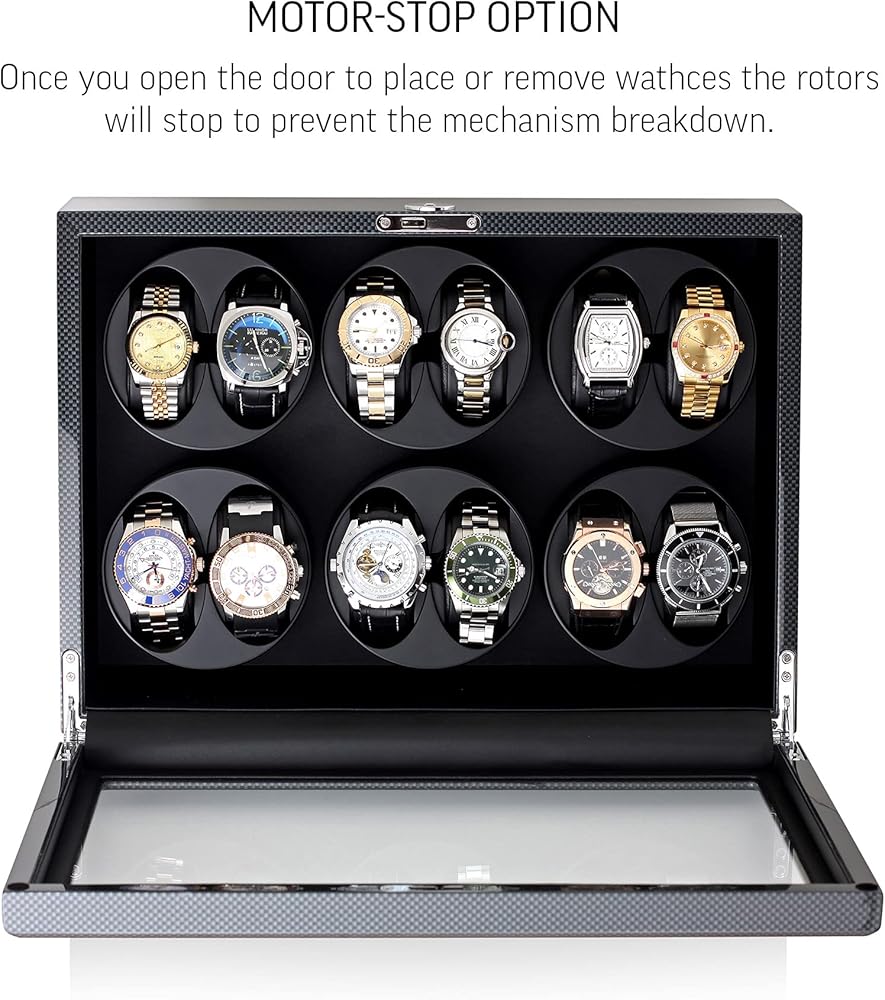 ⭐ خيار إيقاف المحرك: تتوقف الدوارات تلقائيًا بمجرد فتح الغطاء. يتيح لك ذلك منع تعطل آلية اللف عند تثبيت الساعة أو إزالتها من الدوار.