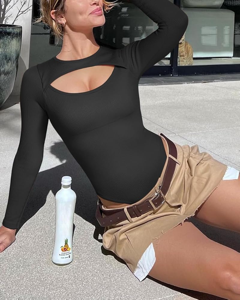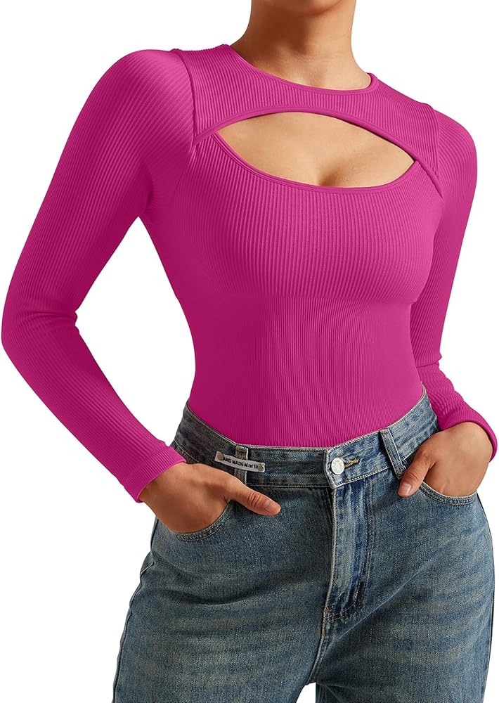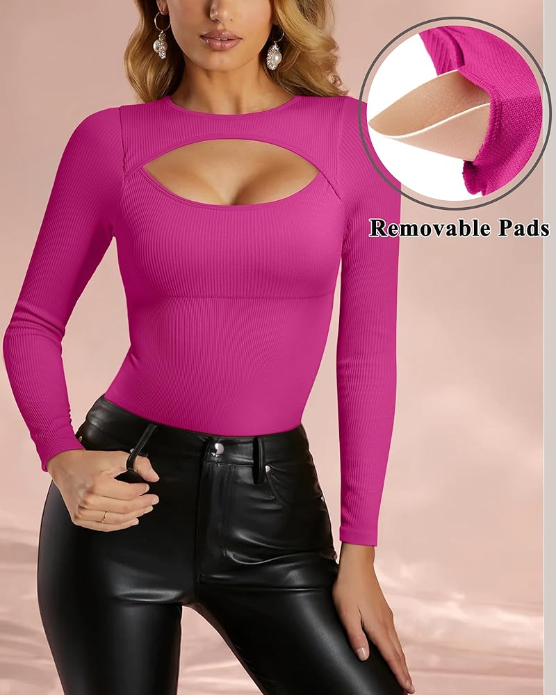 قمصان سالوبيت عصرية بأكمام طويلة للسيدات، هذا السالوبيت مع حمالة صدر مدمجة، يحافظ على بقاء فتياتك في حالة جيدة، ضغط متوسط، قمصان علوية مضلعة بدون خياطة، خط جسم نحيف بشكل ساحر.